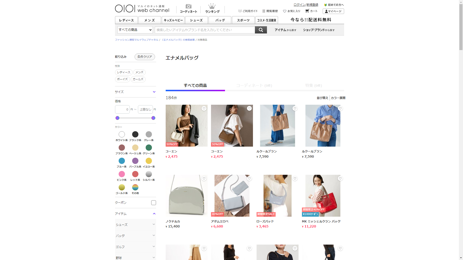 お調べしたところ現在、OIOI(マルイ)ではエナメルバッグの関連する商品が販売されています。