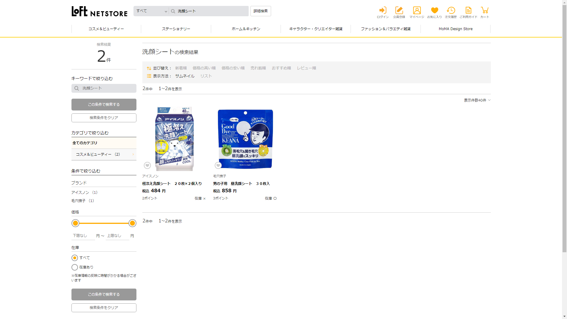 お調べしたところ現在、ロフトでは洗顔シートに関連する商品が販売されています。