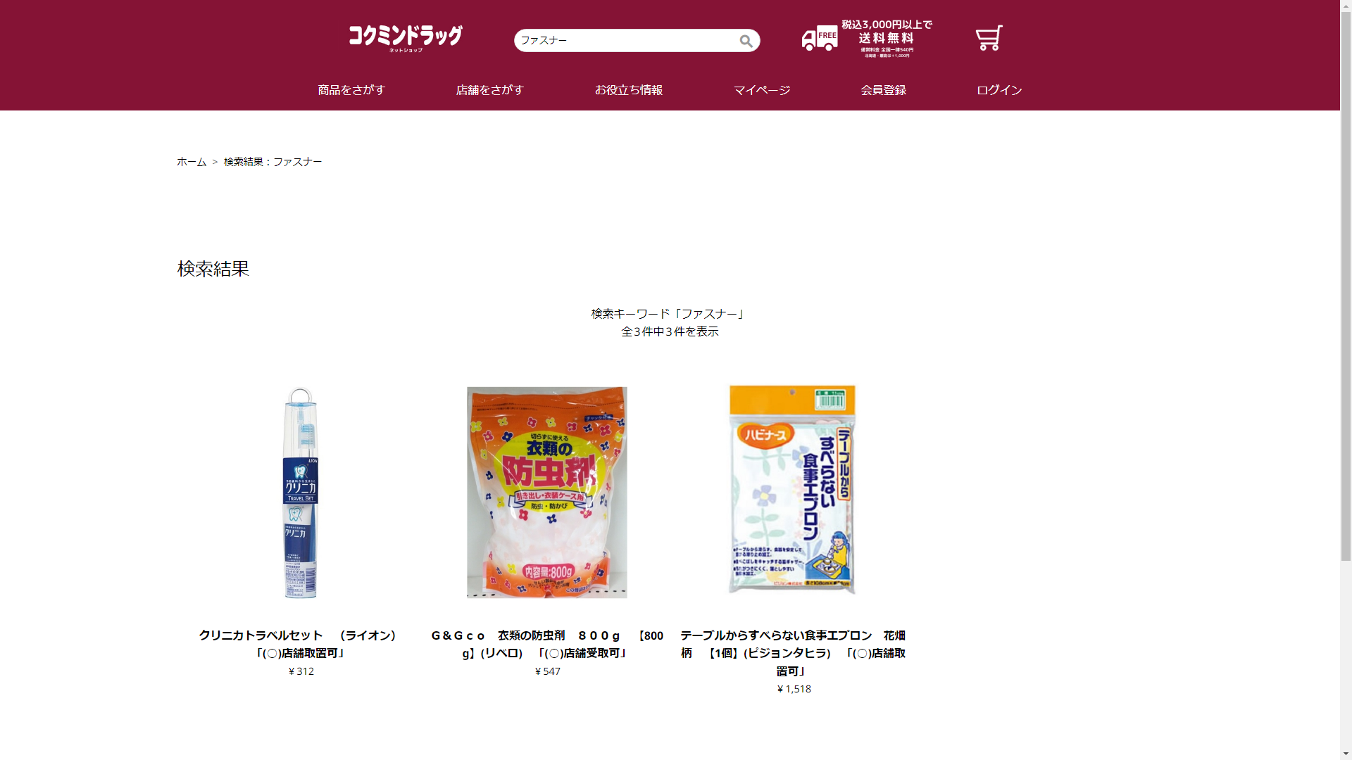 お調べしたところ現在、コクミンドラッグではファスナーの関連する商品が販売されています。