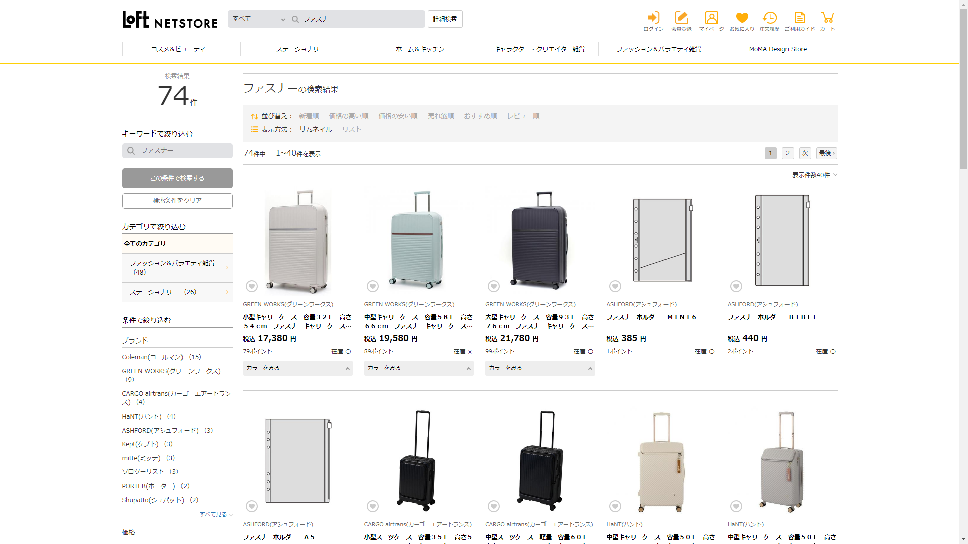お調べしたところ現在、ロフトではファスナーに関連する商品が販売されています。