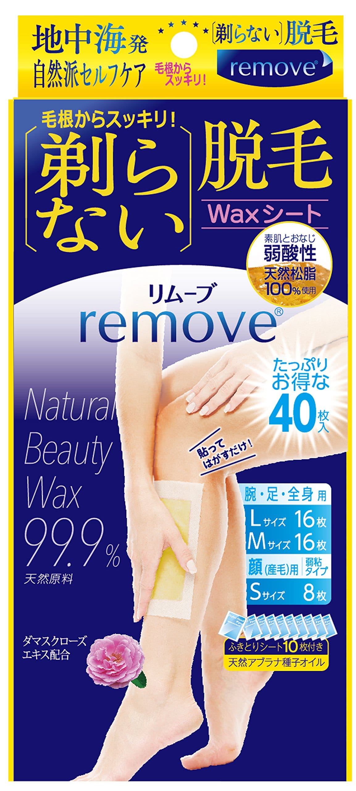 リムーブ 剃らない脱毛 ワックスシート 40枚 脱毛 ワックスシート ブラジリアンワックス セルフ 全身 アンダー ヘア すね毛 デリケートゾーン スキンケア セルフ 自宅 ワックス脱毛 シート アンダーヘア