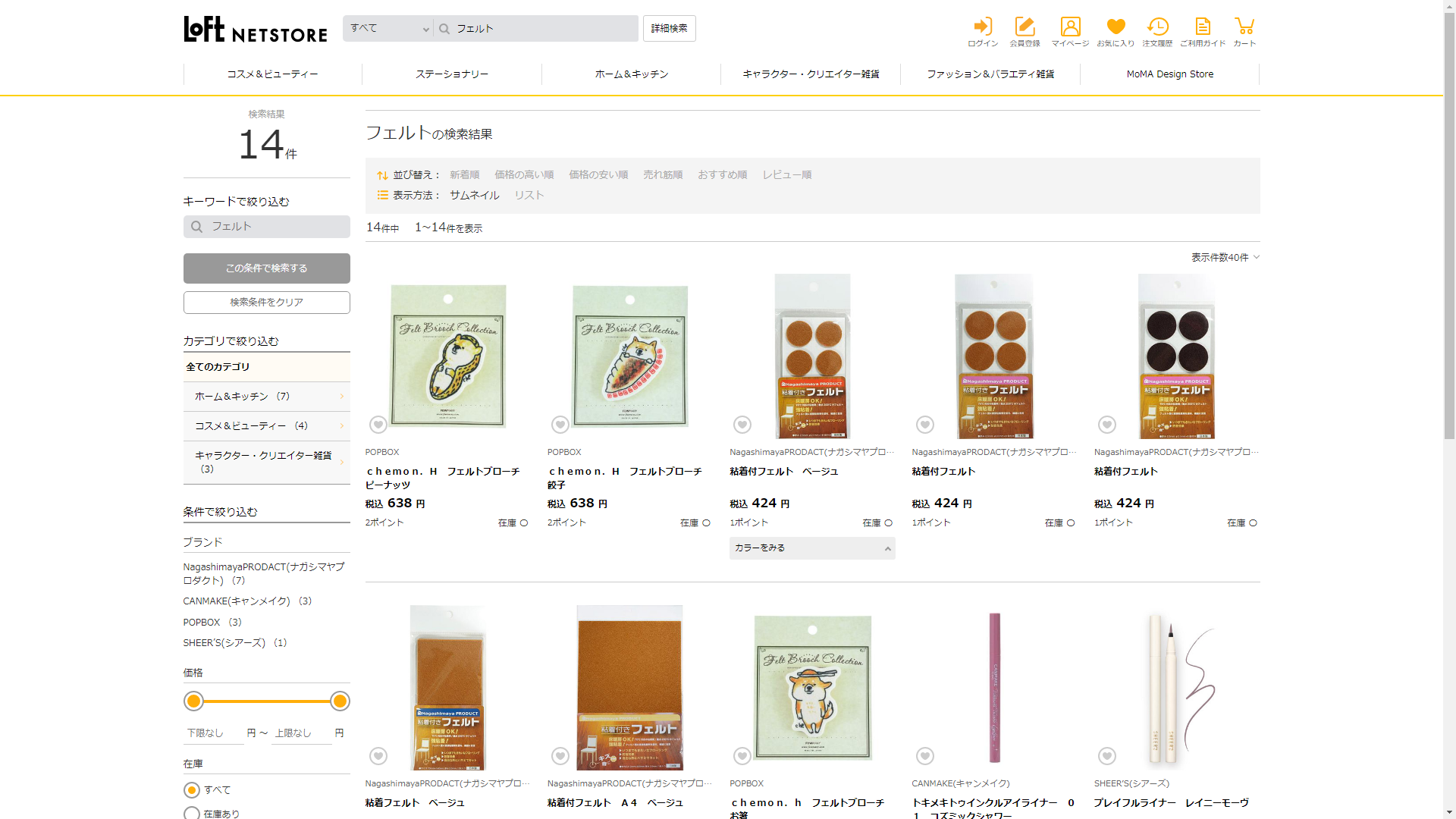 フェルトはロフトで販売されています