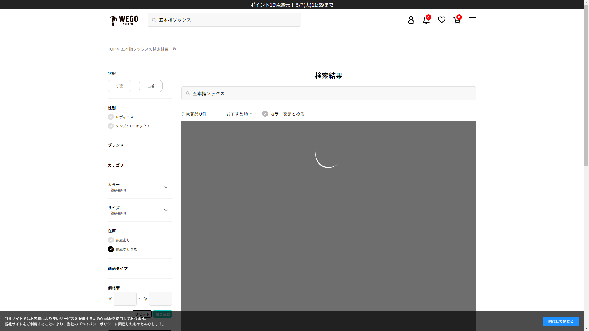 お調べしたところ残念ながら現在ではWEGOに五本指ソックスは販売されていませんでした。