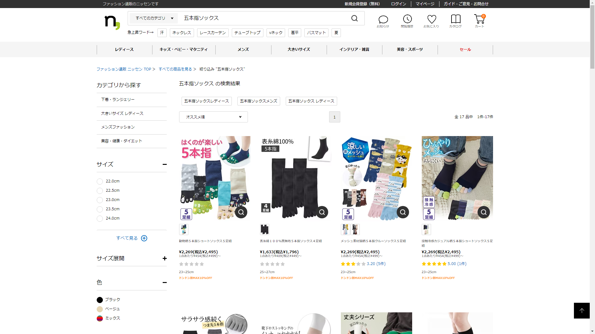 お調べしたところ現在、ニッセンでは五本指ソックスに関連する商品が販売されています。