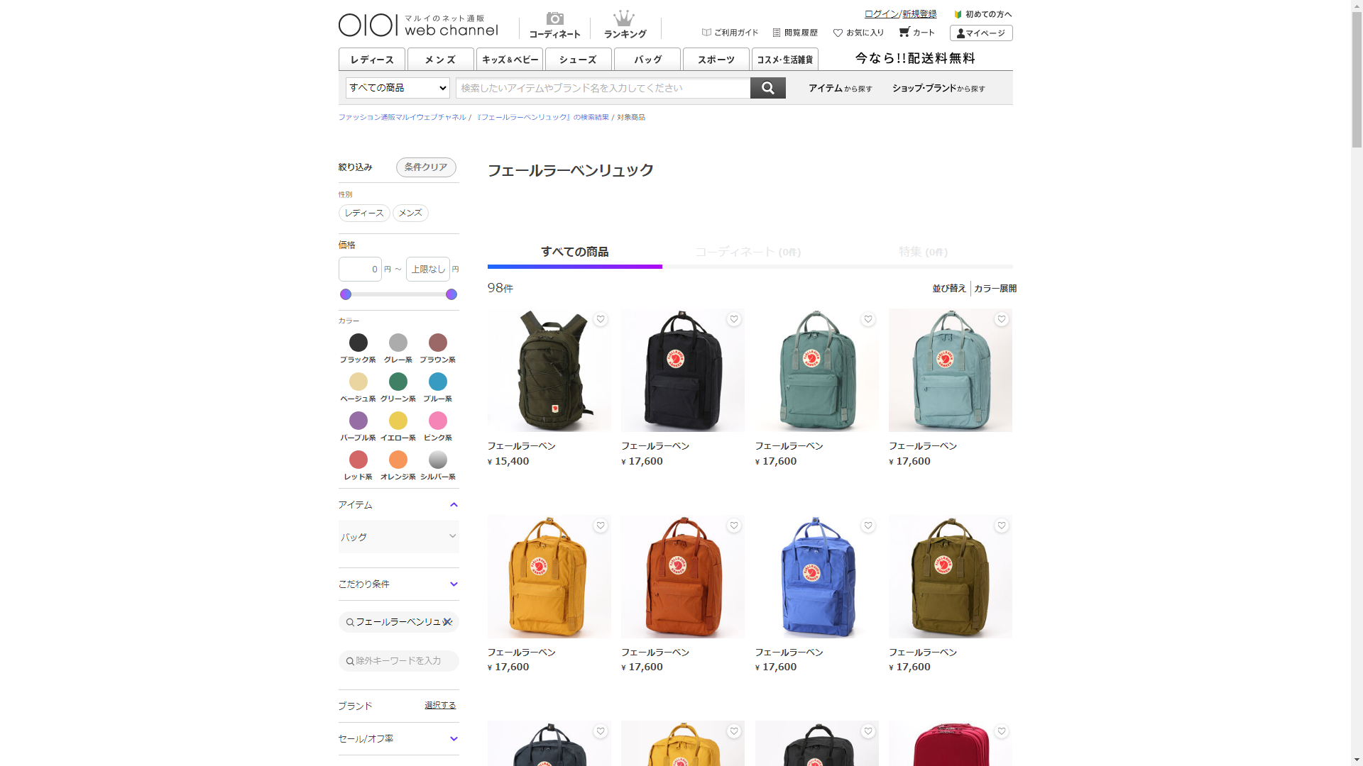 お調べしたところ現在、OIOI(マルイ)ではフェールラーベンリュックの関連する商品が販売されています。