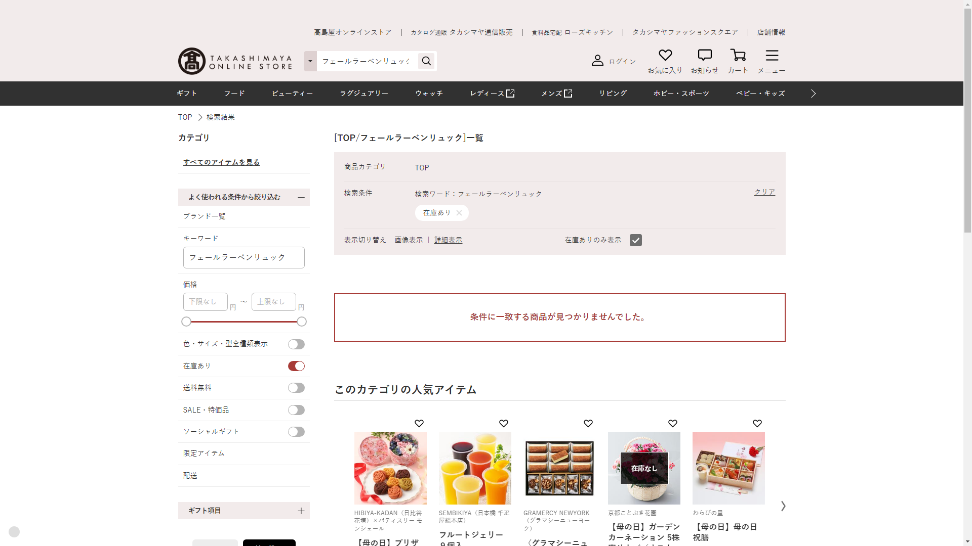 フェールラーベンリュックは高島屋で販売されていません