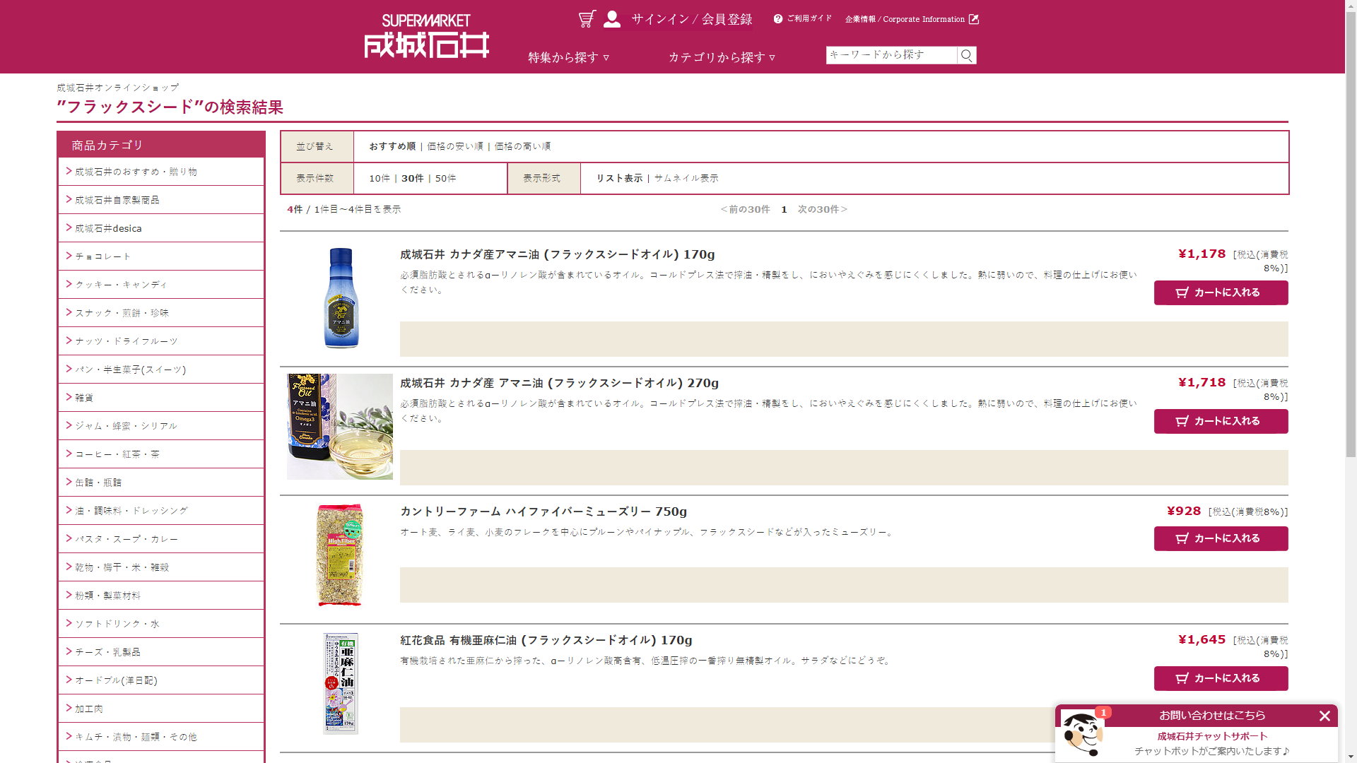 お調べしたところ現在、成城石井公式オンラインショップではフラックスシードに関連する商品を買うことが可能です。