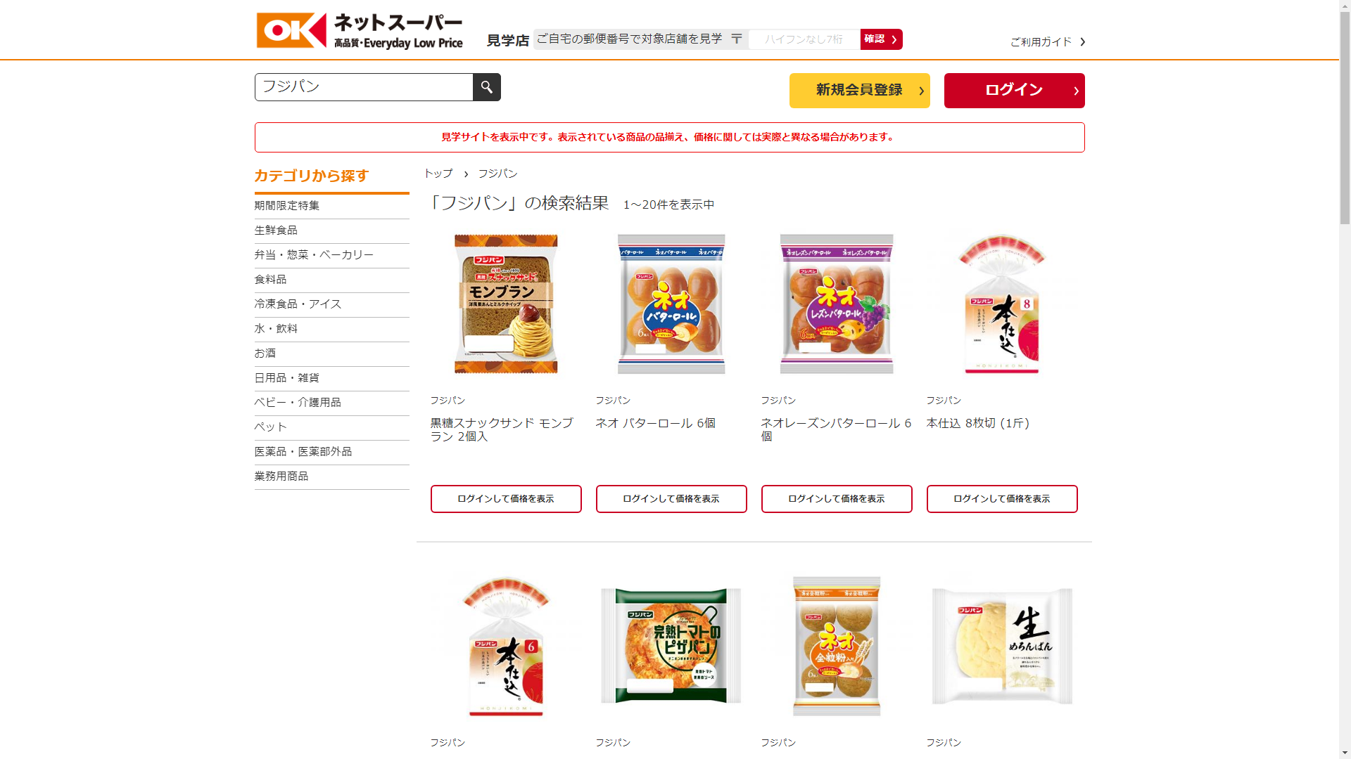 お調べしたところ現在OKネットスーパーではフジパンに関連する商品が販売されています。