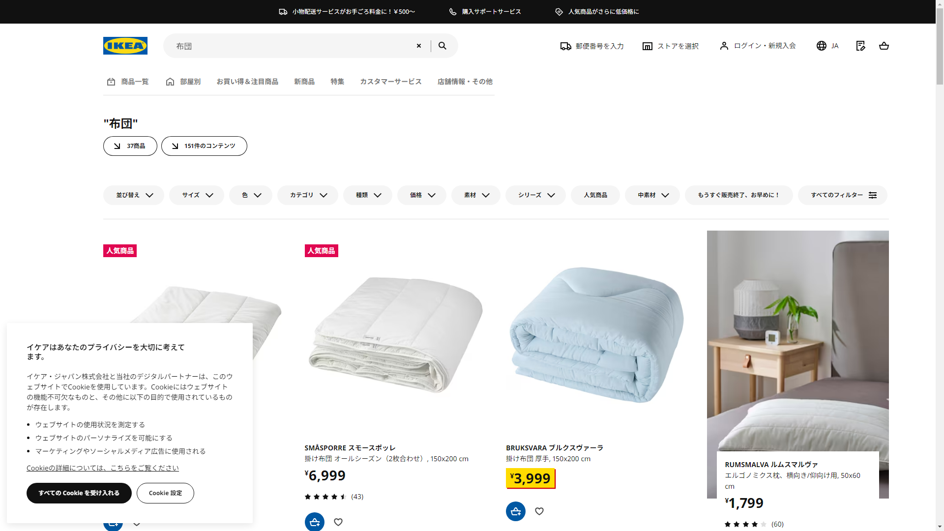 お調べしたところ現在、IKEAでは布団に関連する商品を買うことが可能です。