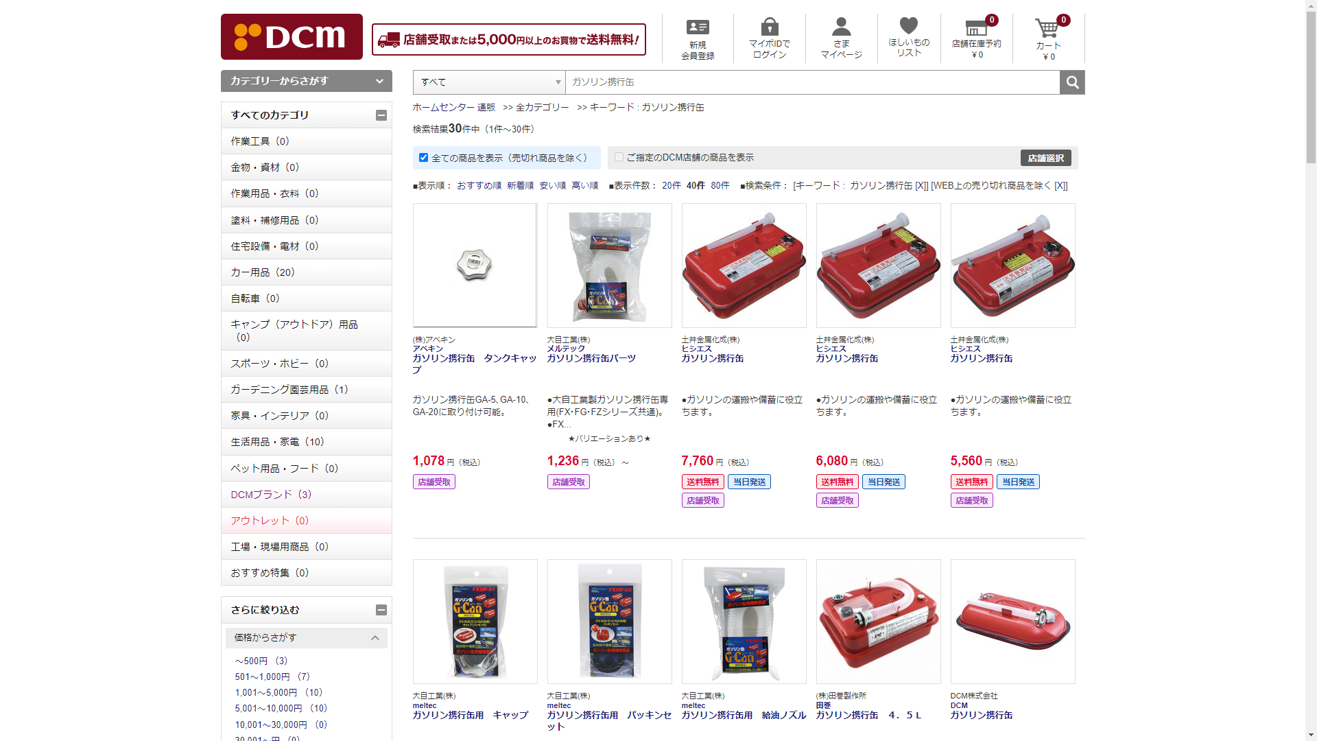 お調べしたところ現在、DCMではガソリン携行缶に関連する商品が販売されています。