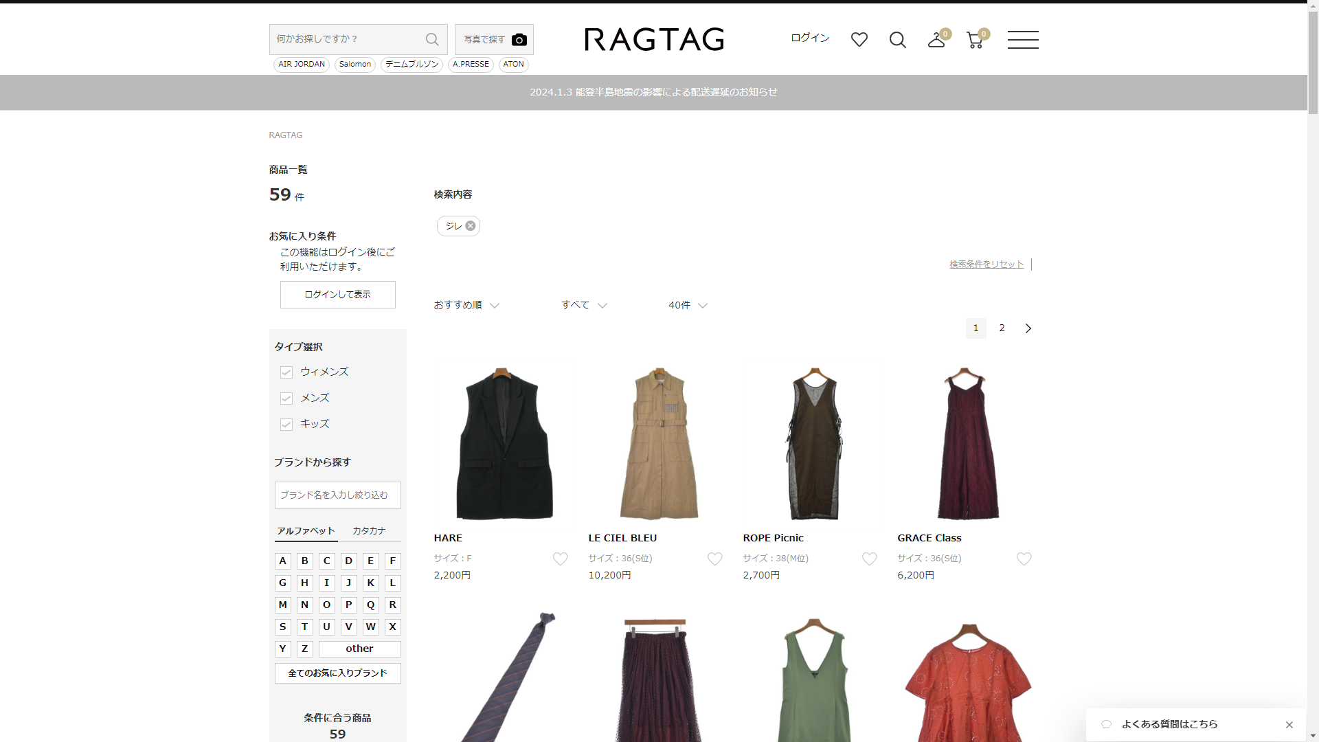 お調べしたところ現在、RAGTAGではジレに関連する商品を買うことが可能です。
