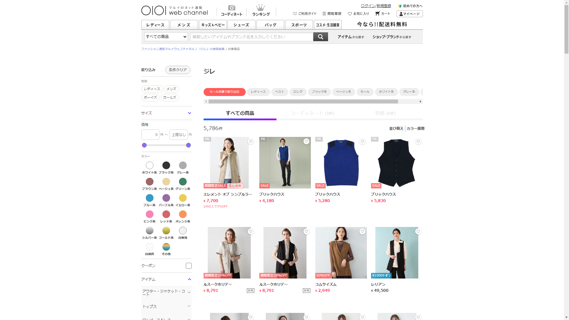 お調べしたところ現在、OIOI(マルイ)ではジレの関連する商品が販売されています。