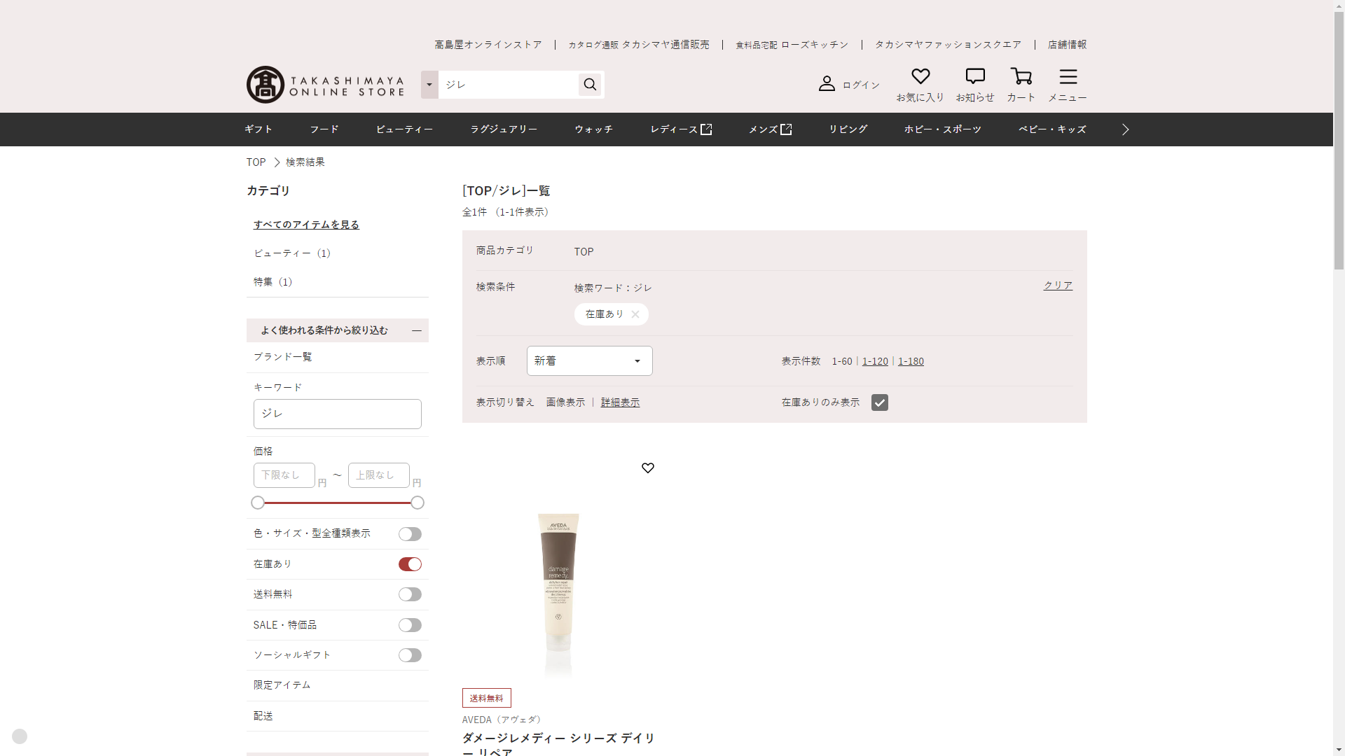 お調べしたところ現在、高島屋ではジレに関連する商品が販売されています。