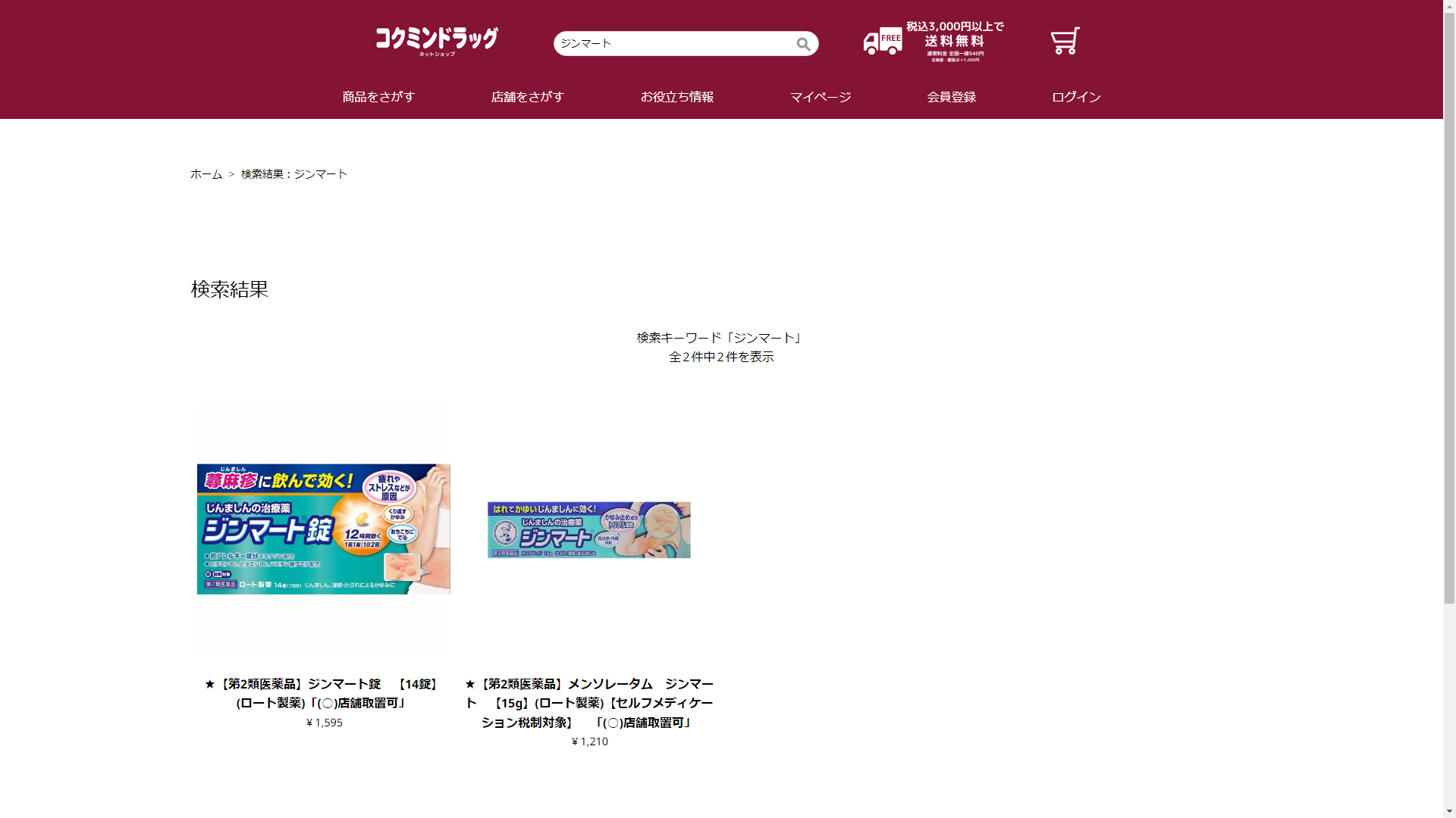 ジンマートはコクミンドラッグに売っています