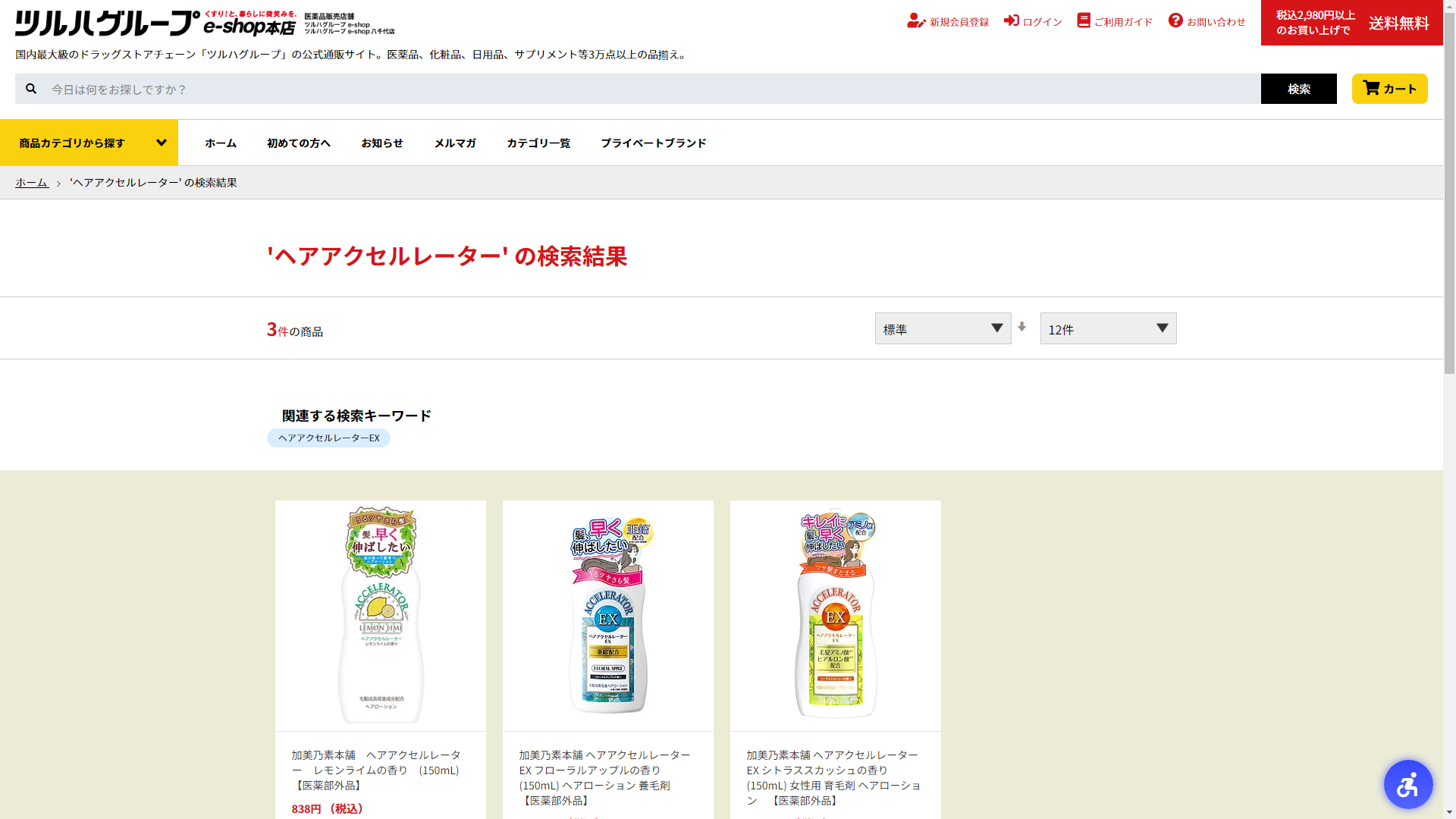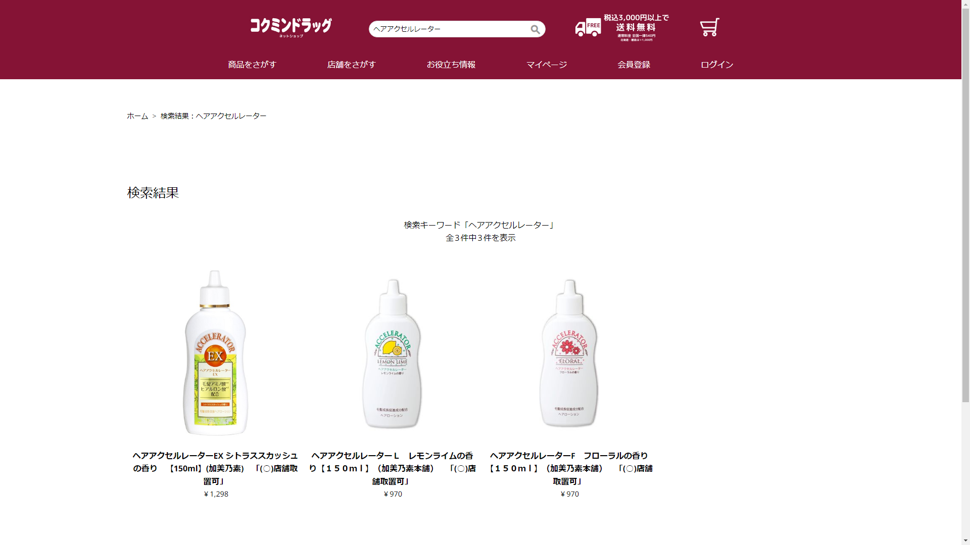 お調べしたところ現在、コクミンドラッグではヘアアクセルレーターの関連する商品が販売されています。