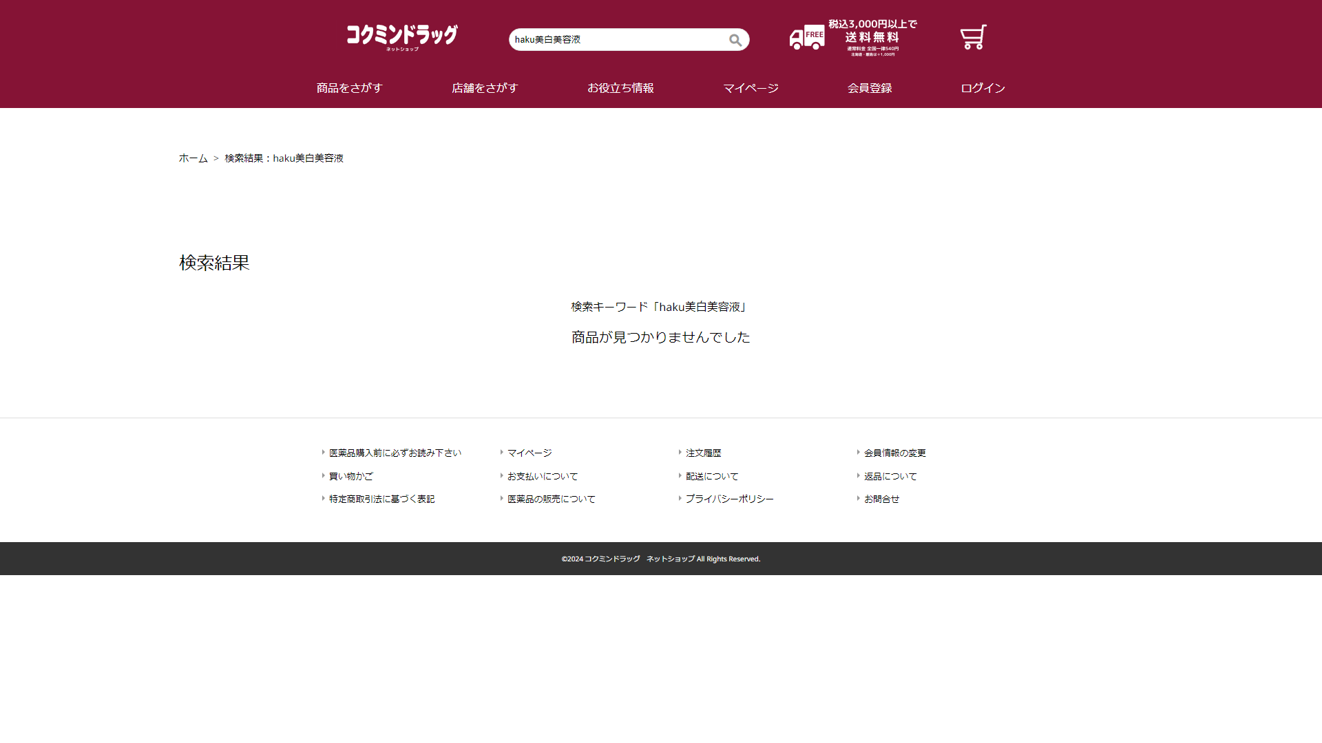 haku美白美容液はコクミンドラッグには売っていません