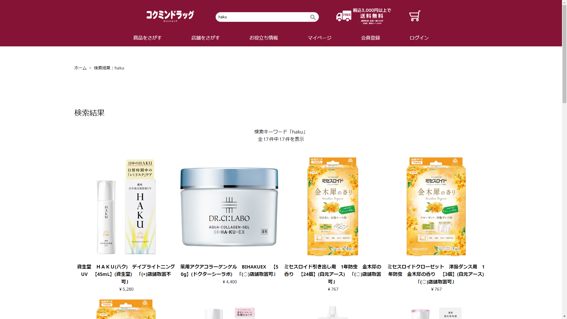 hakuはコクミンドラッグに売っています