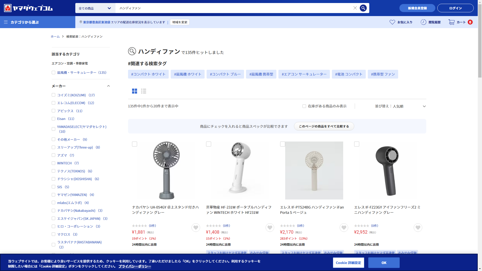 ハンディファンはヤマダデンキで買える