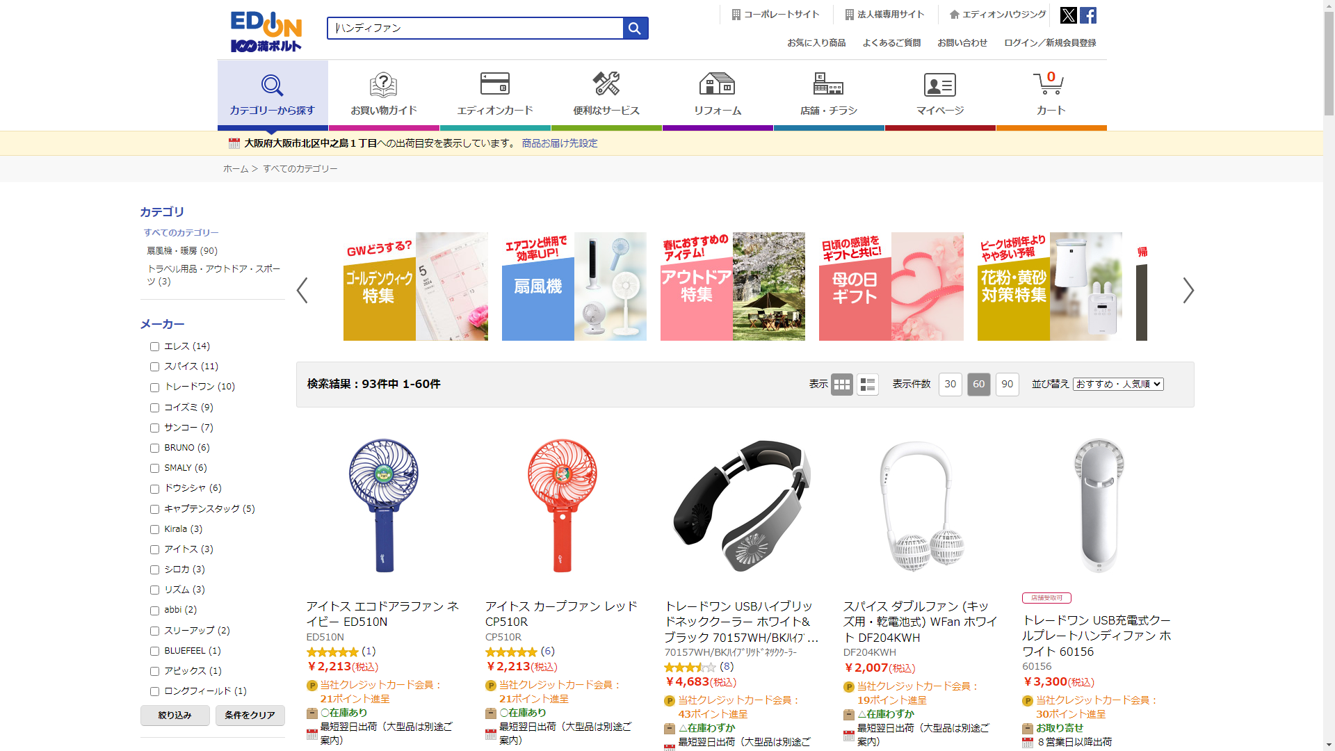 ハンディファンはEDIONで販売されています