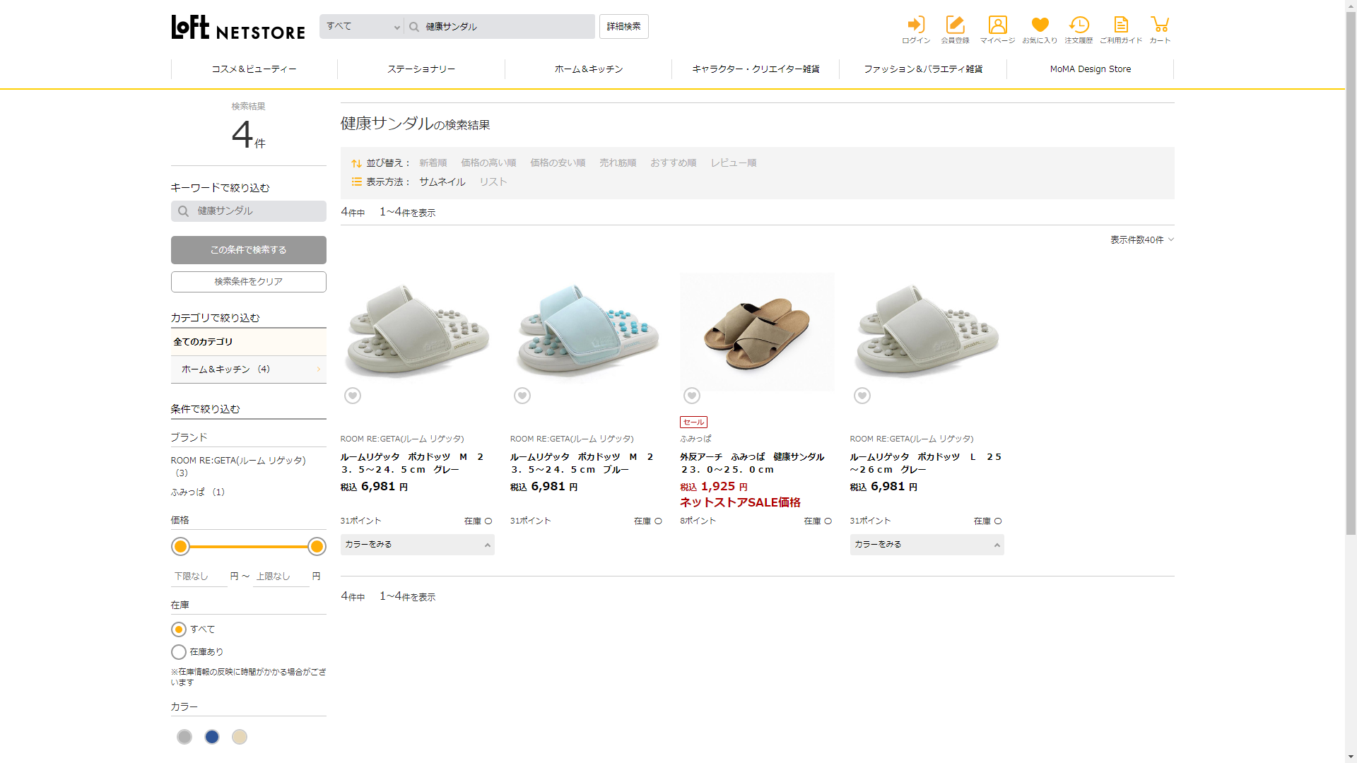 お調べしたところ現在、ロフトでは健康サンダルに関連する商品が販売されています。
