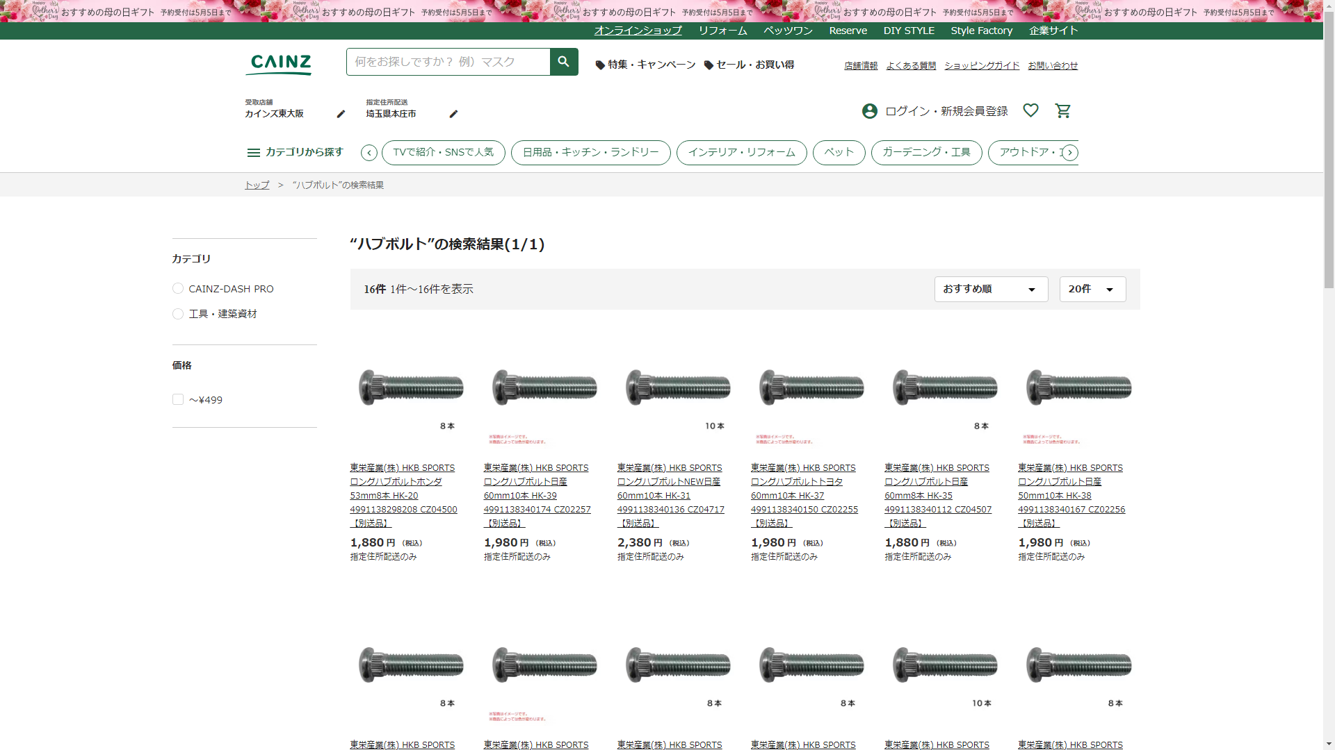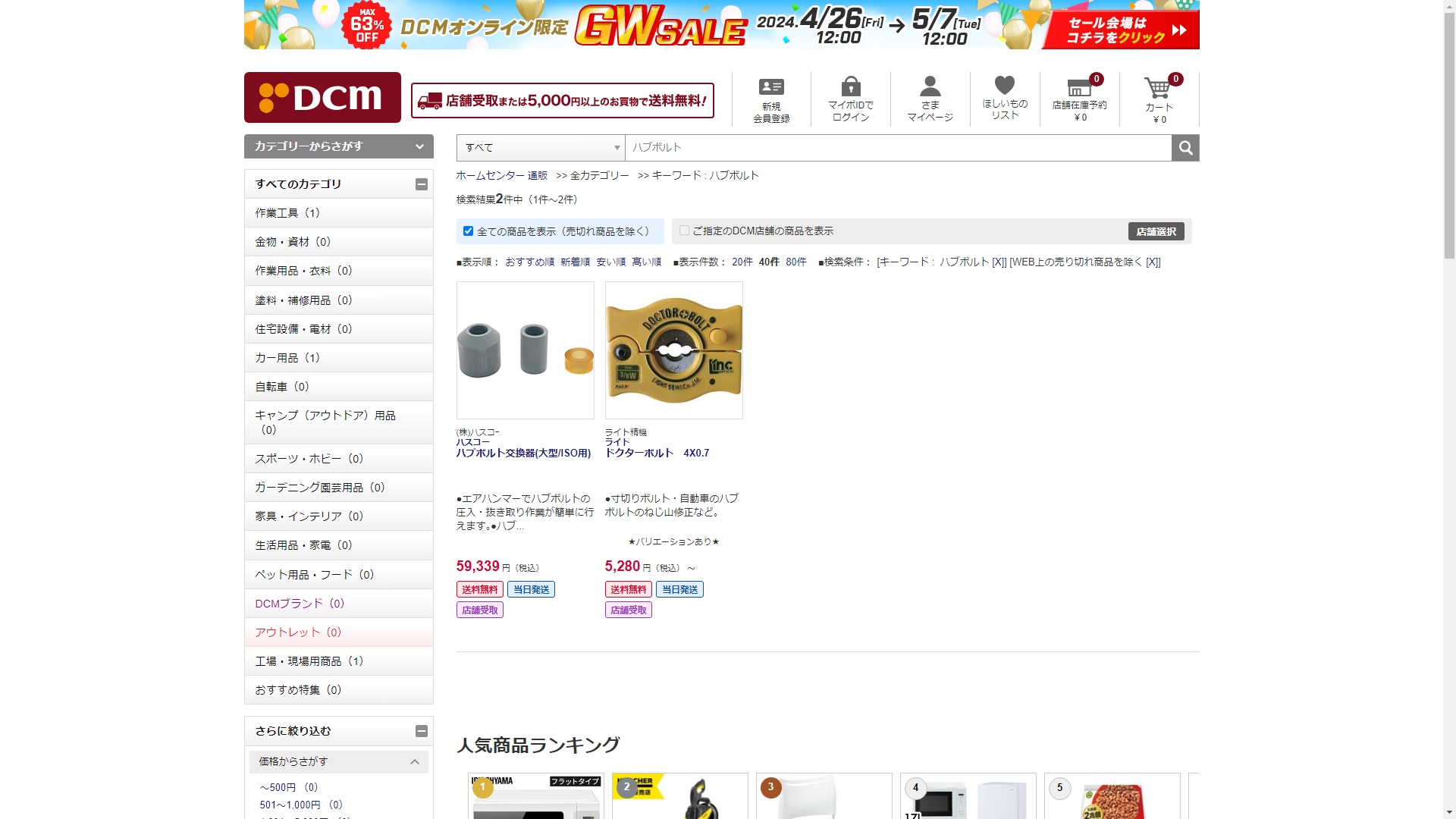 お調べしたところ現在、DCMではハブボルトに関連する商品が販売されています。