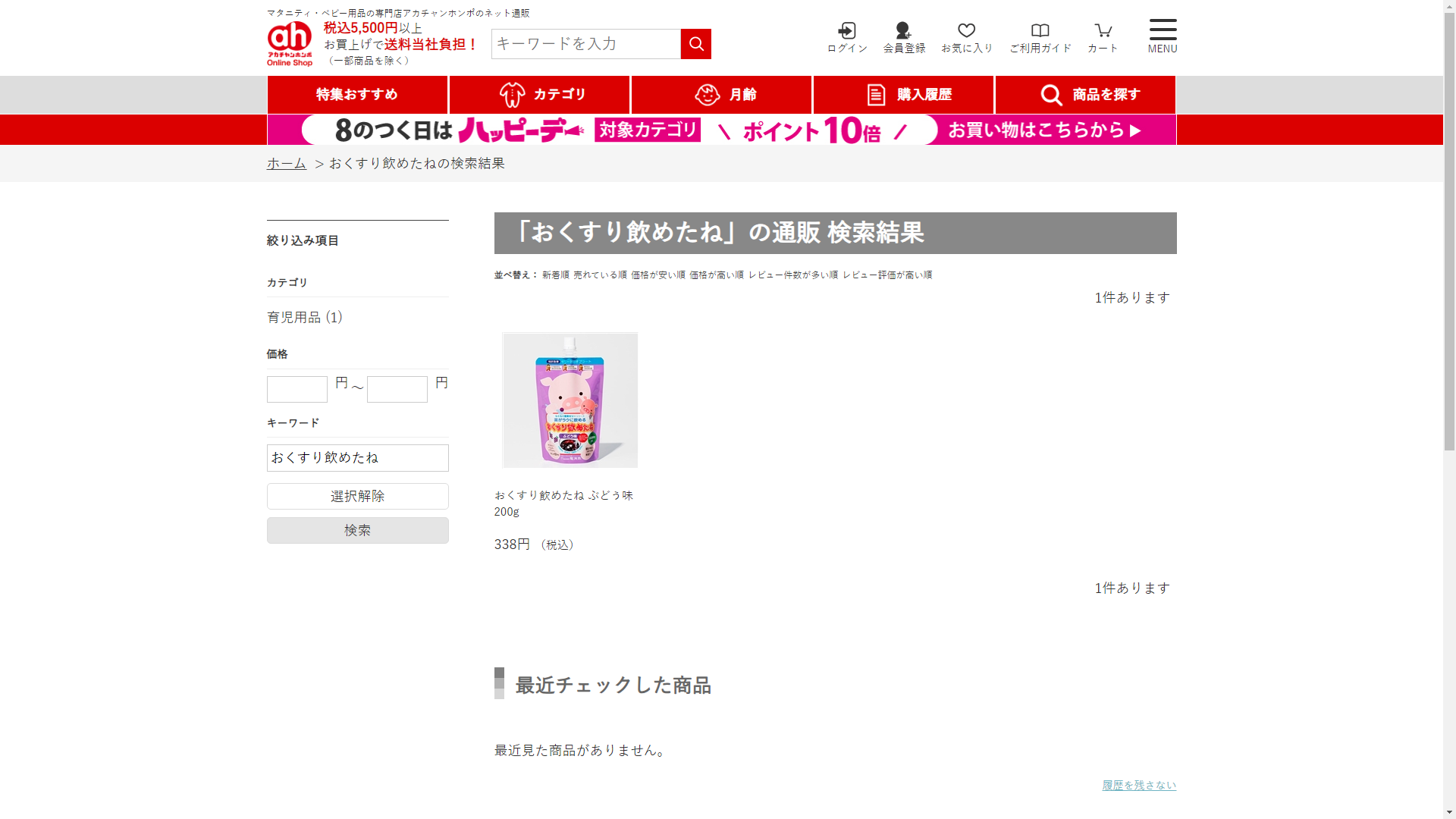 お調べしたところ現在、アカチャン本舗ではおくすり飲めたねの関連する商品が販売されています。
