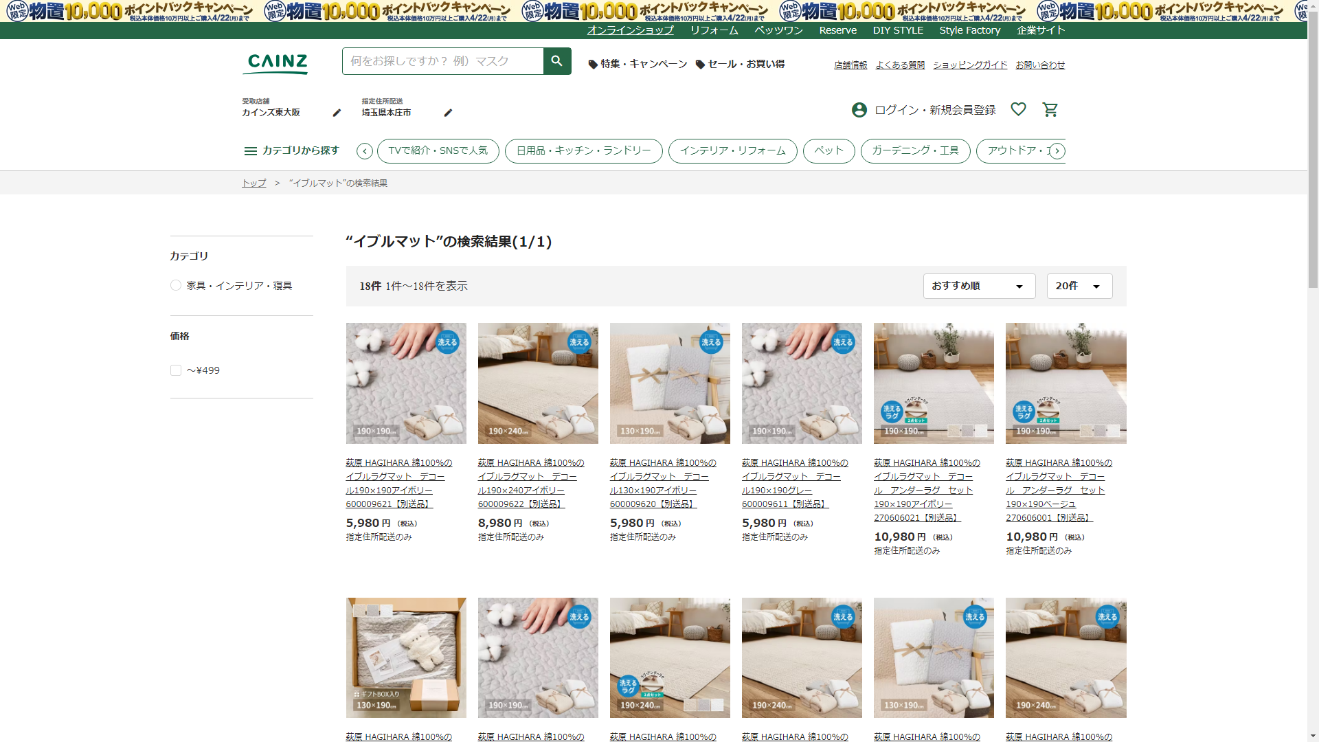 お調べしたところ現在、CAINZではイブルマットの関連する商品が販売されています。