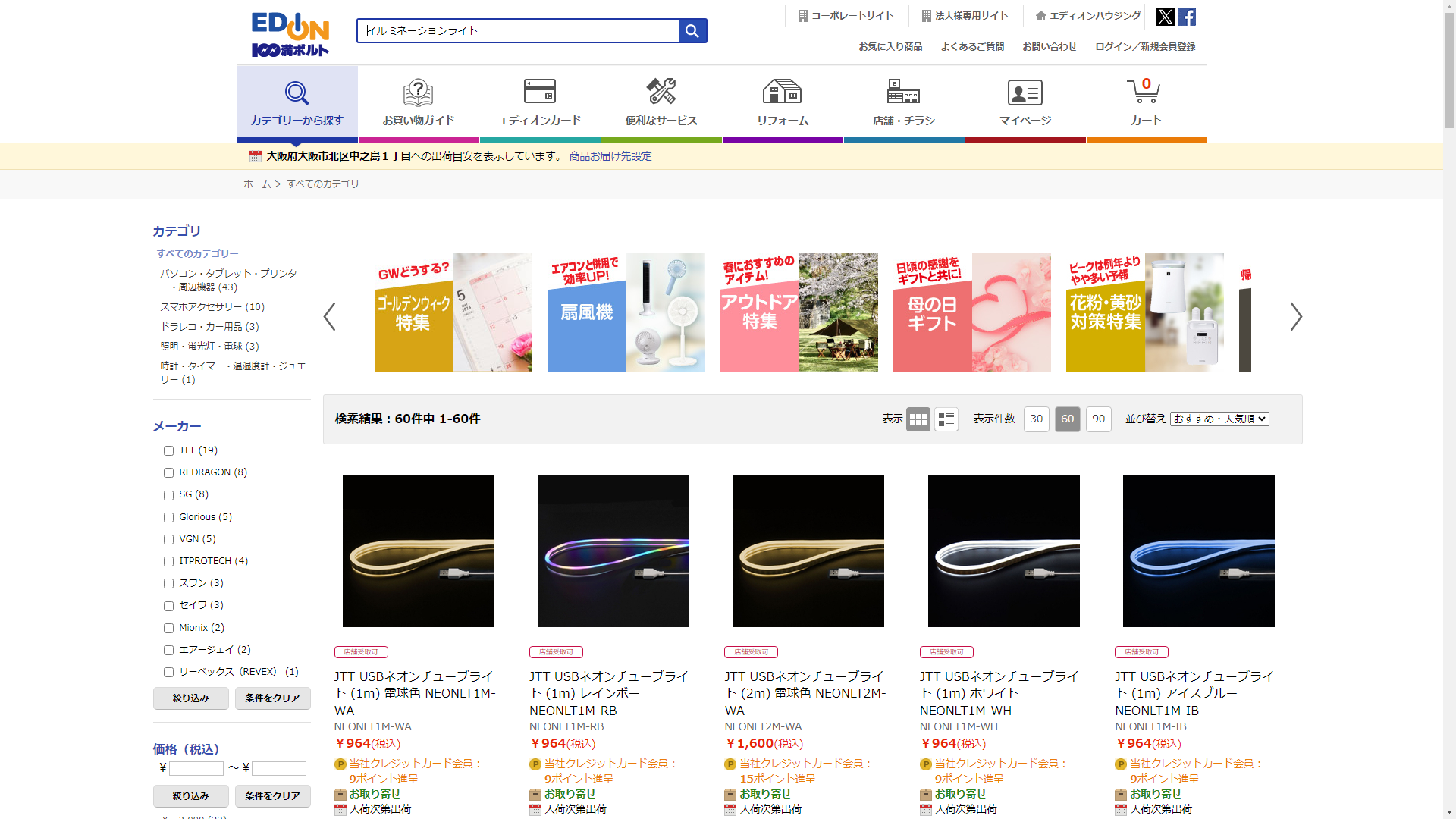 イルミネーションライトはEDIONで販売されています