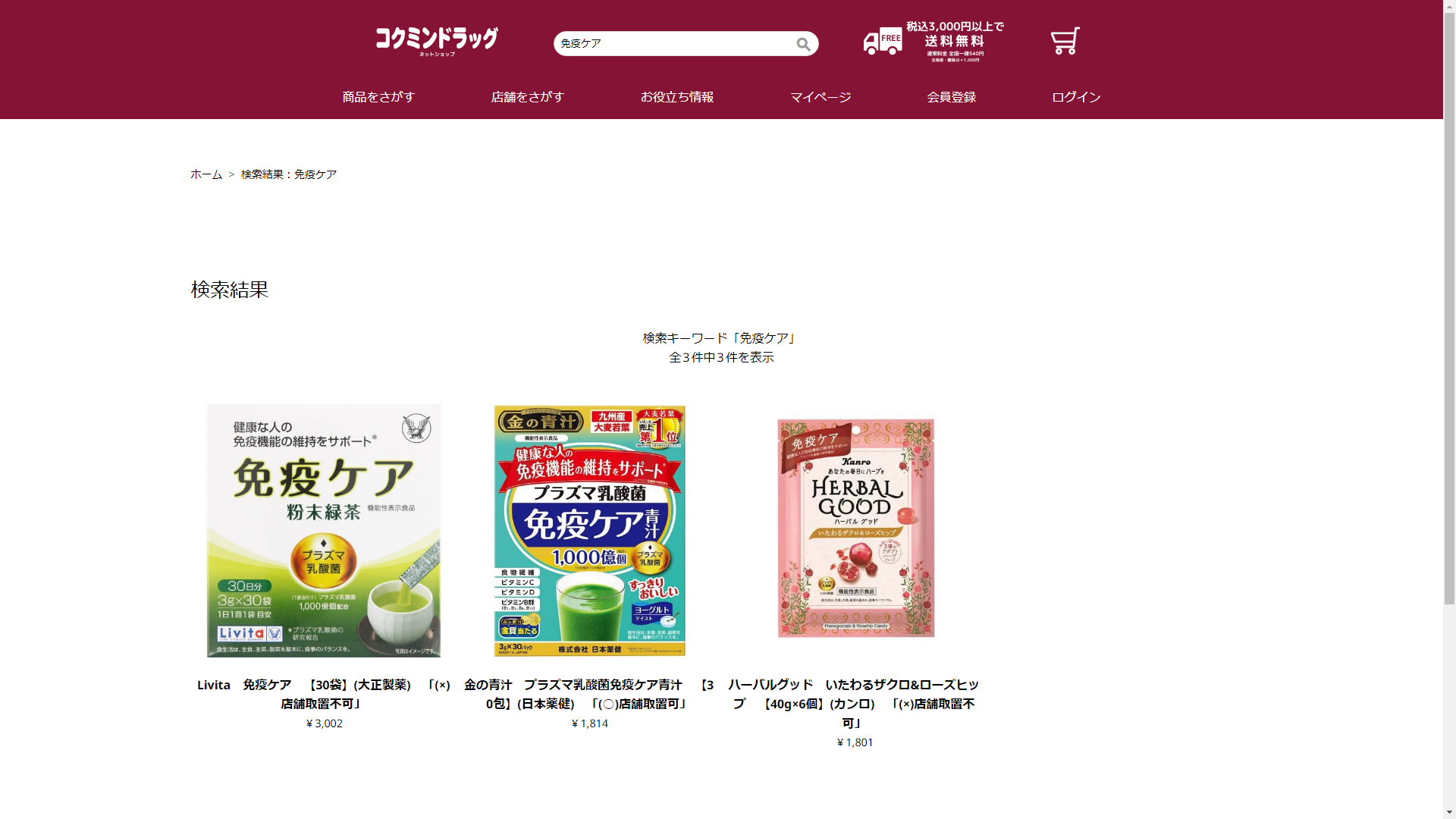 免疫ケアはコクミンドラッグに売っています