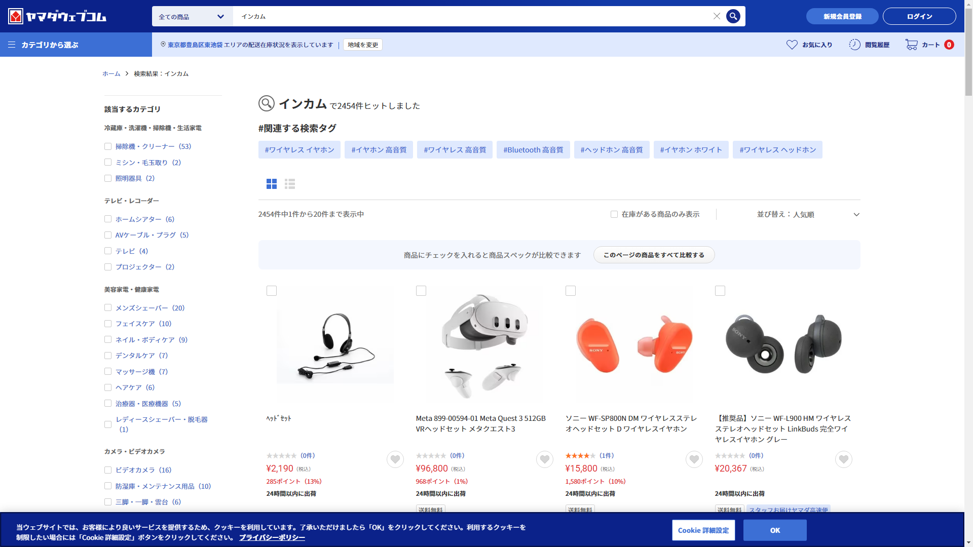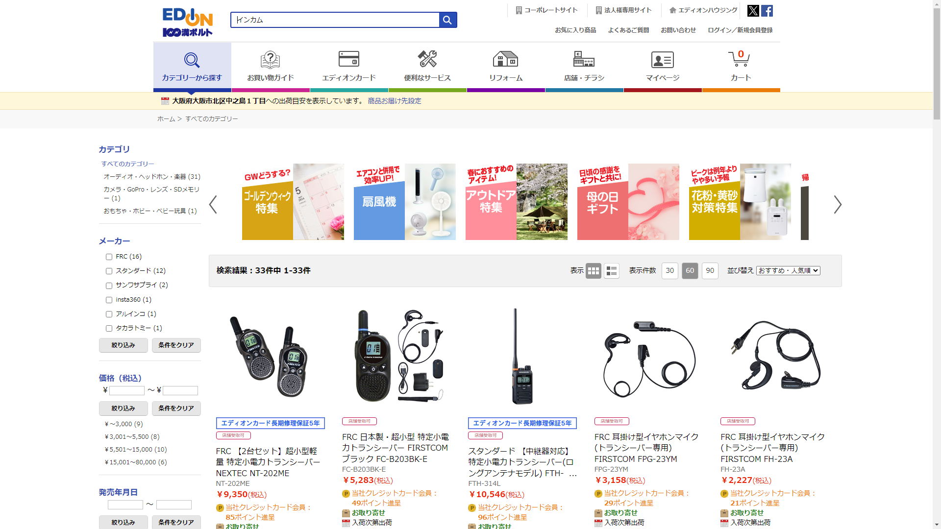 お調べしたところ現在、家電・電化製品のコジマではインカムの関連する商品が販売されています。