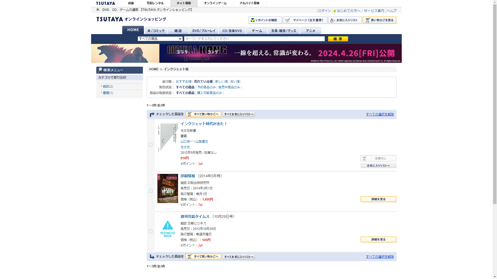 お調べしたところ現在、蔦屋書店ではインクジェット紙の関連する商品が販売されています。