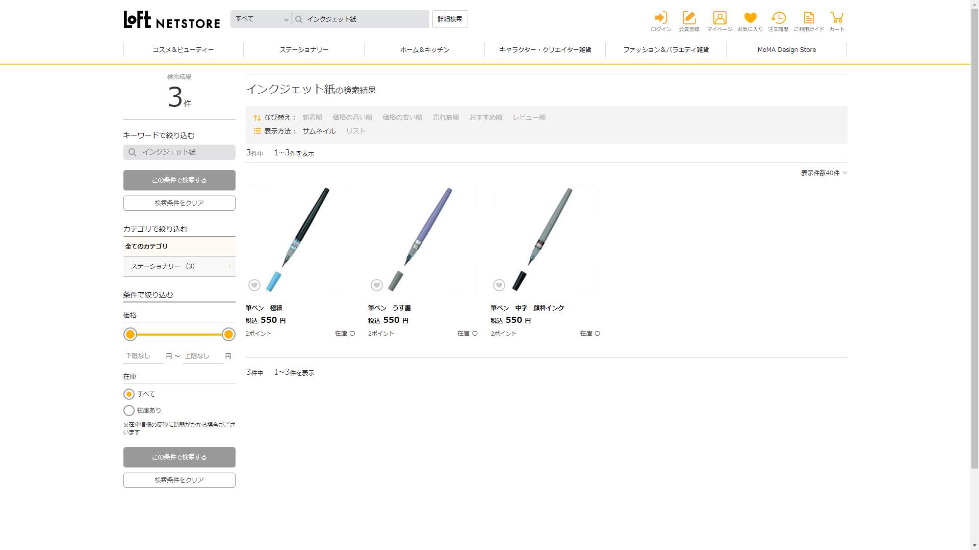お調べしたところ現在、ロフトではインクジェット紙に関連する商品が販売されています。