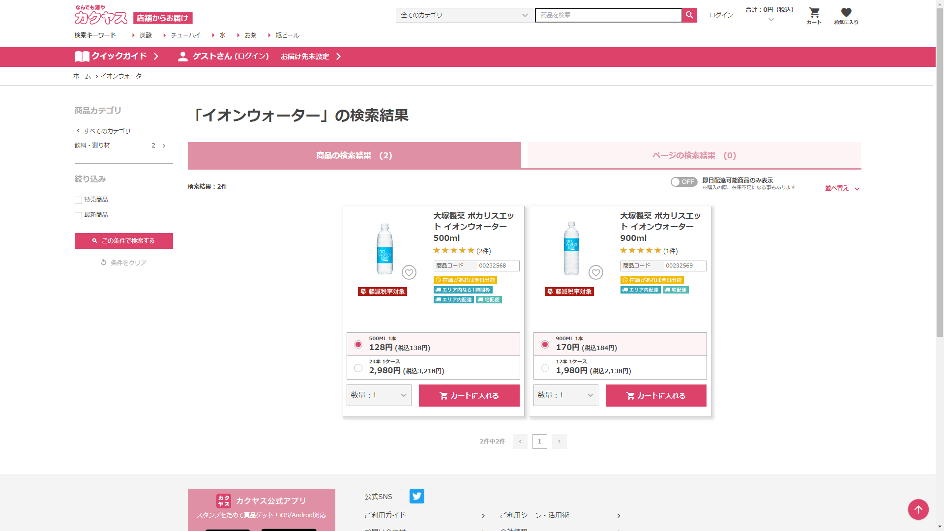 お調べしたところ現在、なんでも酒やカクヤスではイオンウォーターに関連する商品を買うことが可能です。