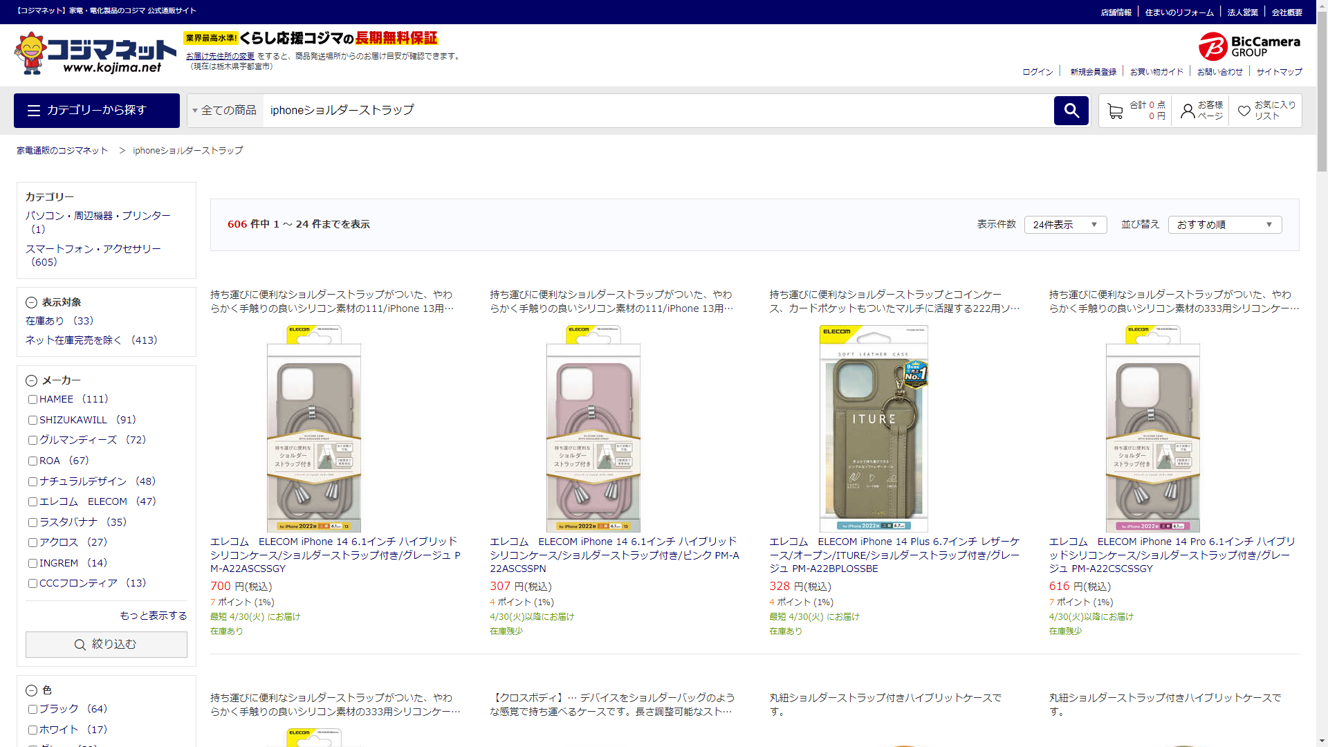 お調べしたところ現在、家電・電化製品のコジマではiphoneショルダーストラップの関連する商品が販売されています。