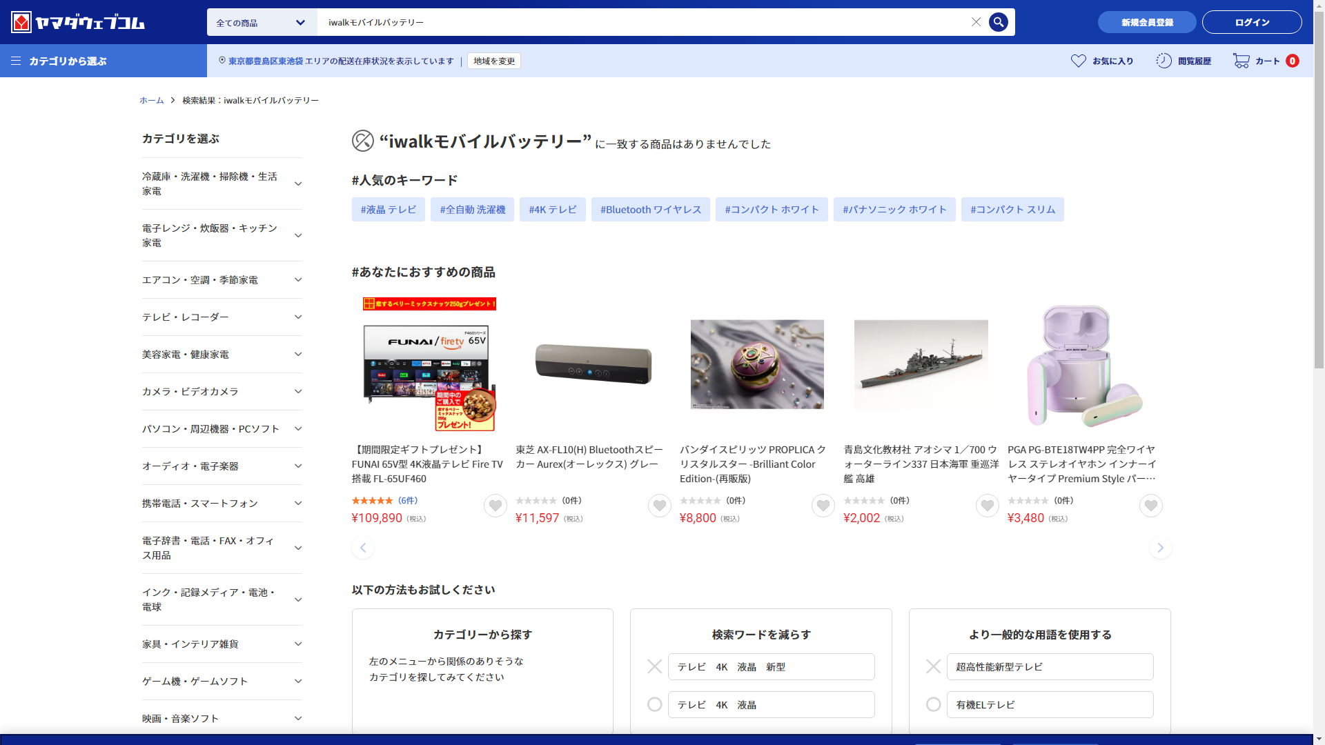 お調べしたところ残念ながら現在ではヤマダデンキにiwalkモバイルバッテリーは販売されていませんでした。