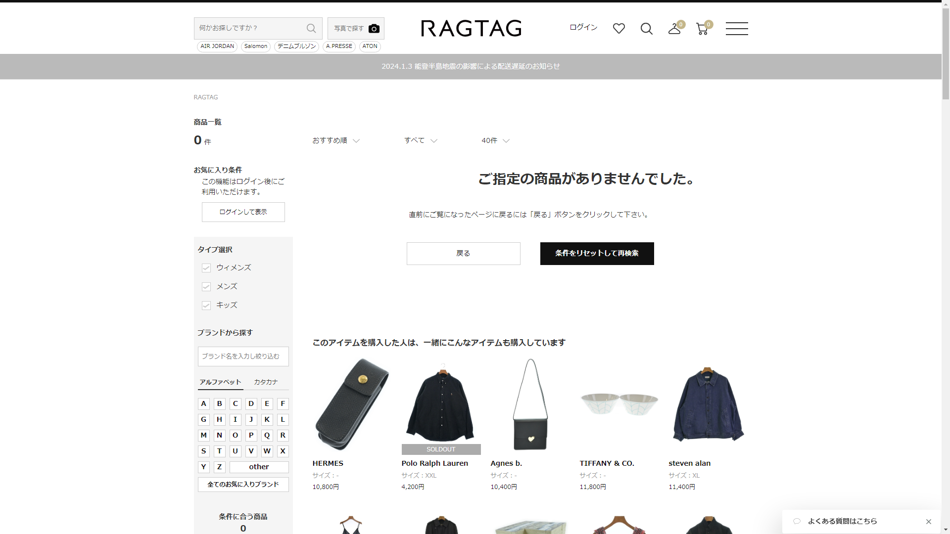 お調べしたところ残念ながら現在ではRAGTAGにジャンスポーツリュックは販売されていませんでした。
