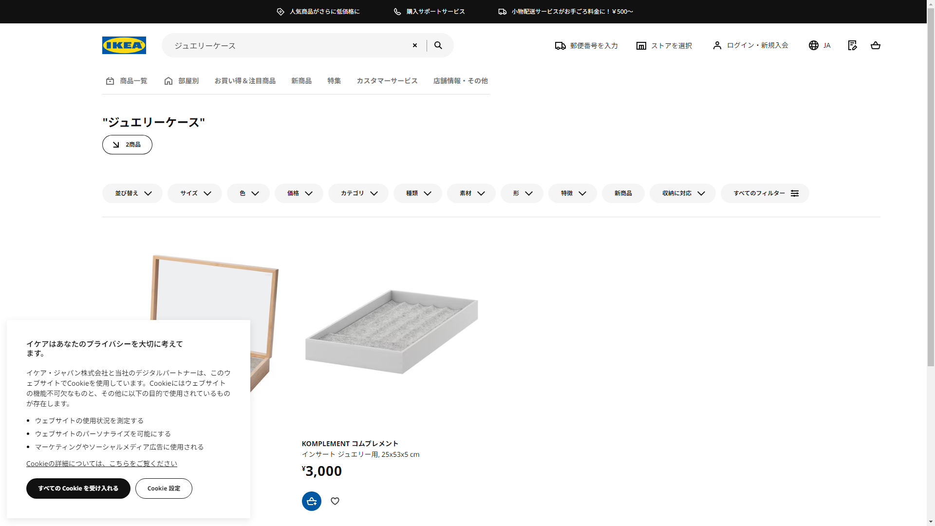 お調べしたところ現在、IKEAではジュエリーケースに関連する商品を買うことが可能です。