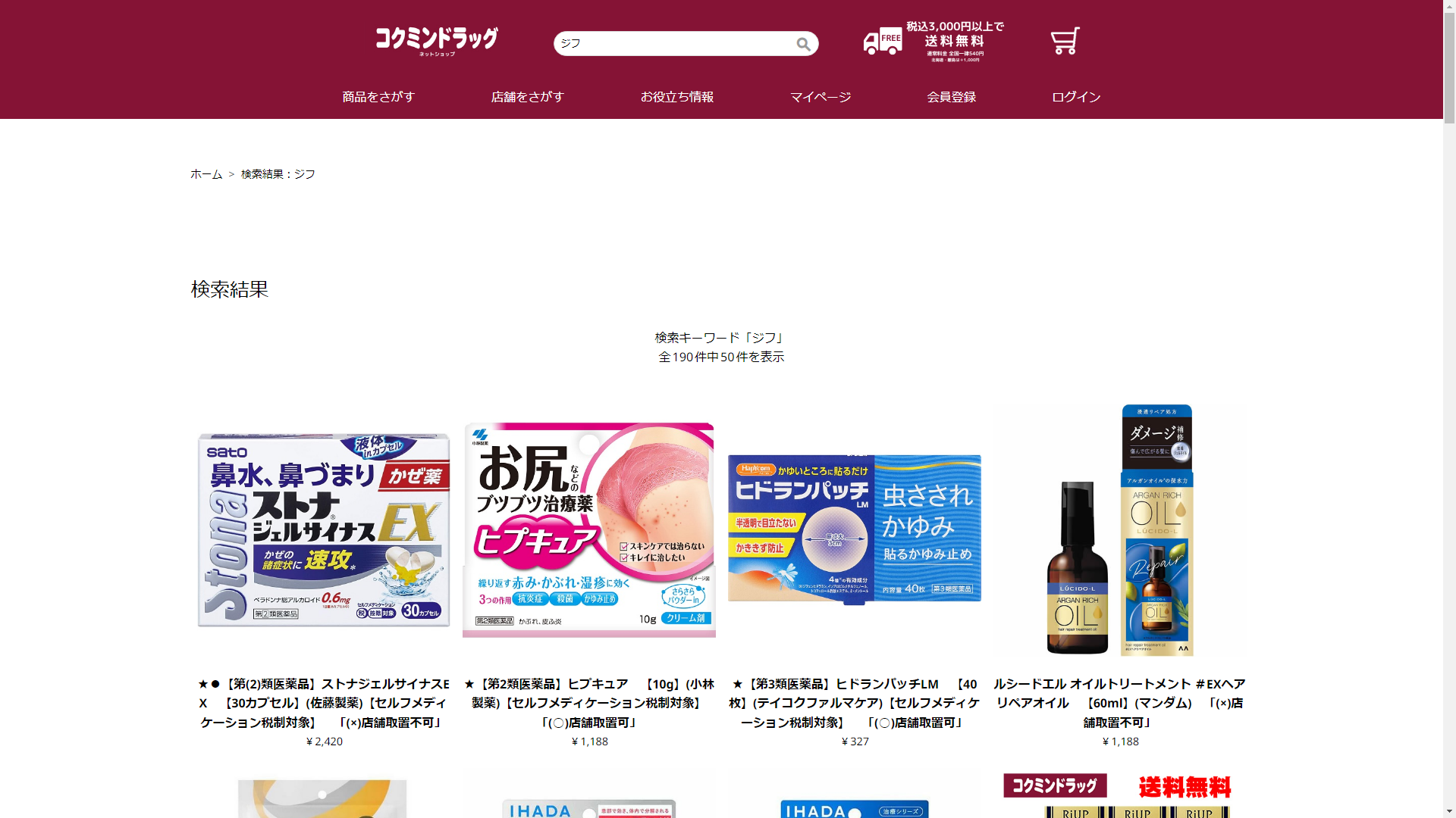 お調べしたところ現在、コクミンドラッグではジフの関連する商品が販売されています。