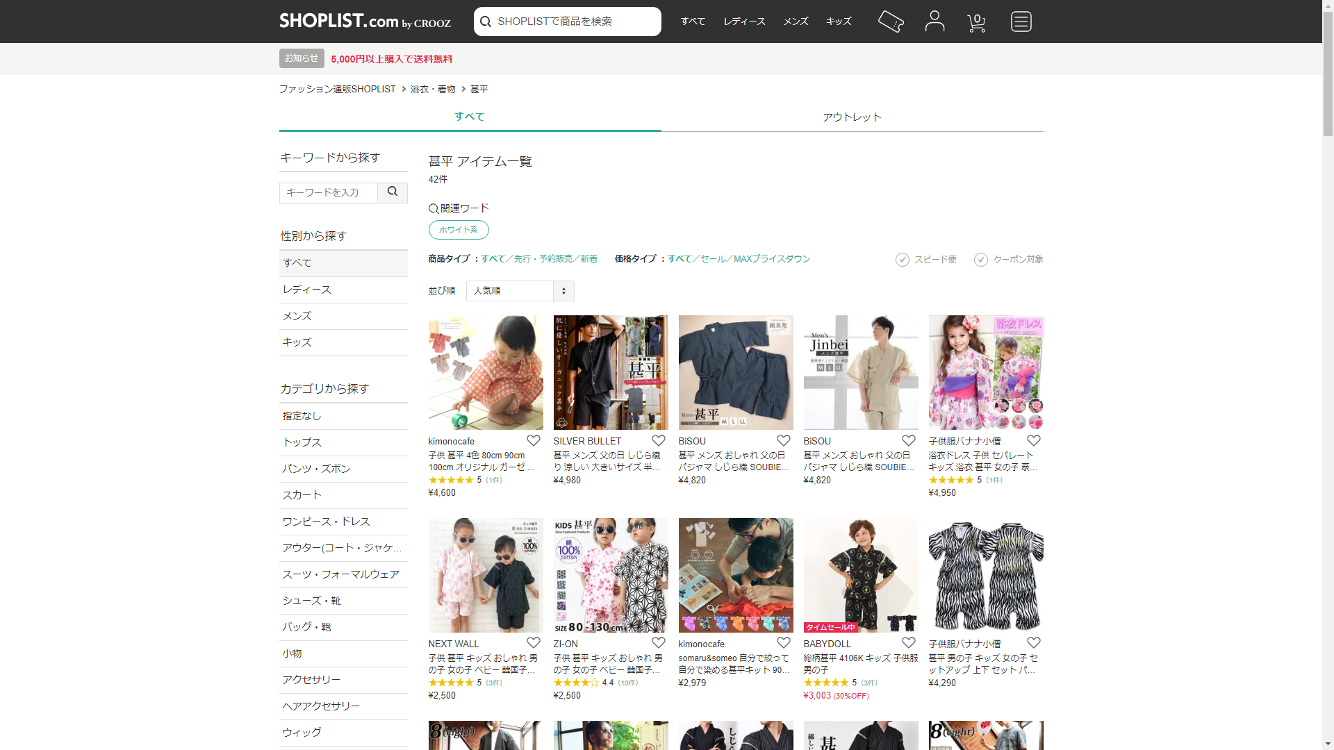 甚平はSHOPLISTに売っています