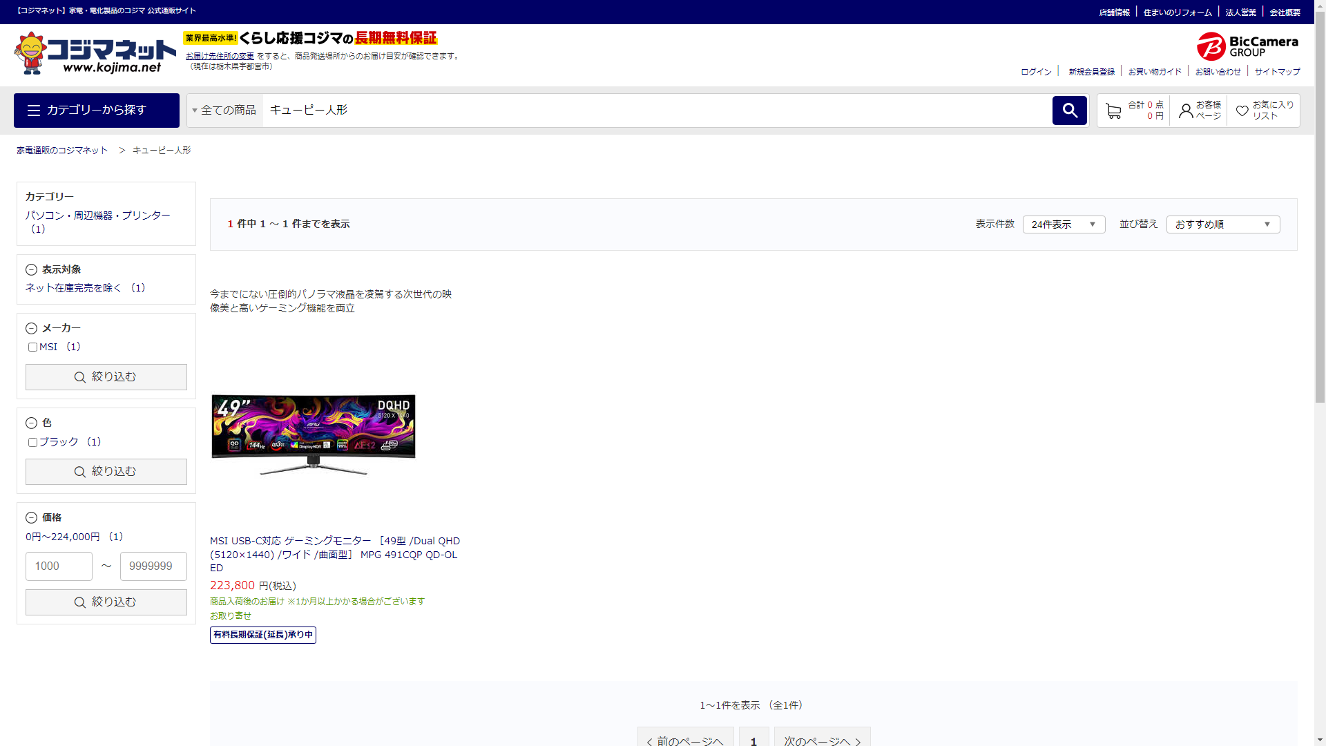 キューピー人形は家電・電化製品のコジマで販売されています