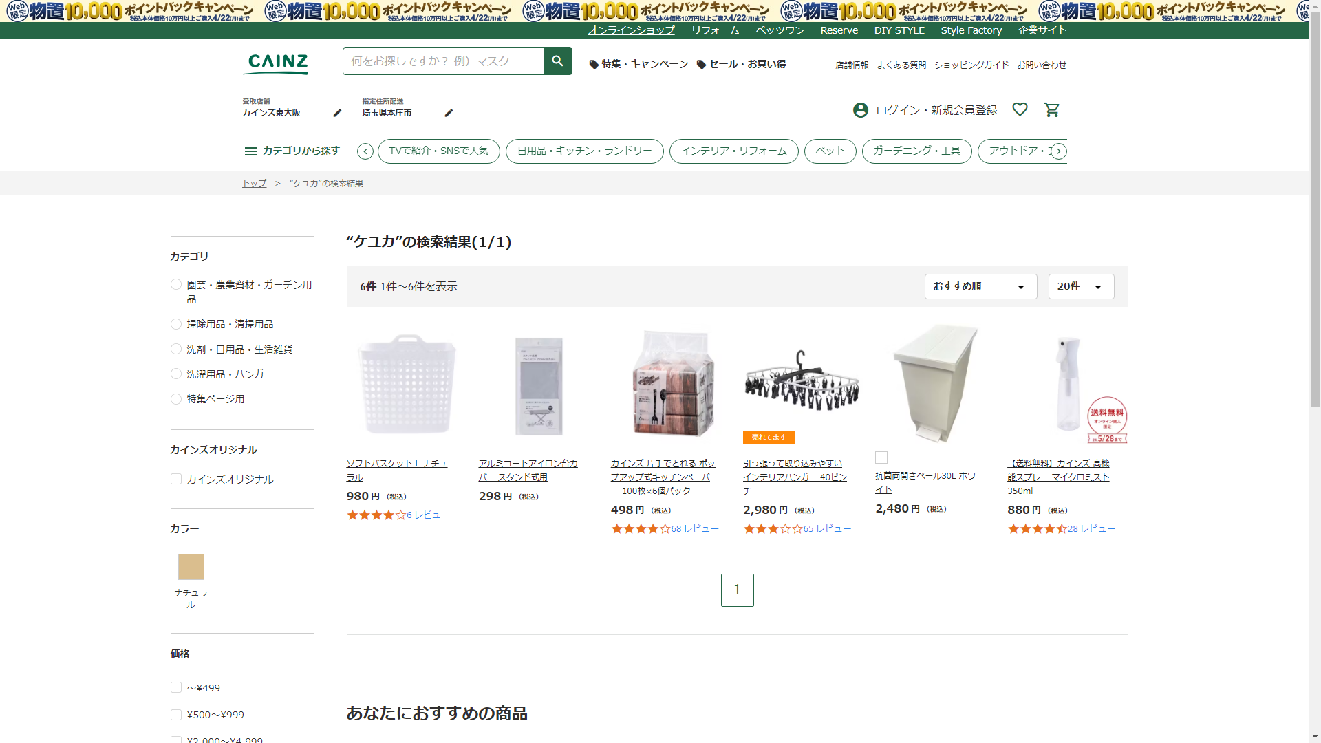 お調べしたところ現在、CAINZではケユカの関連する商品が販売されています。