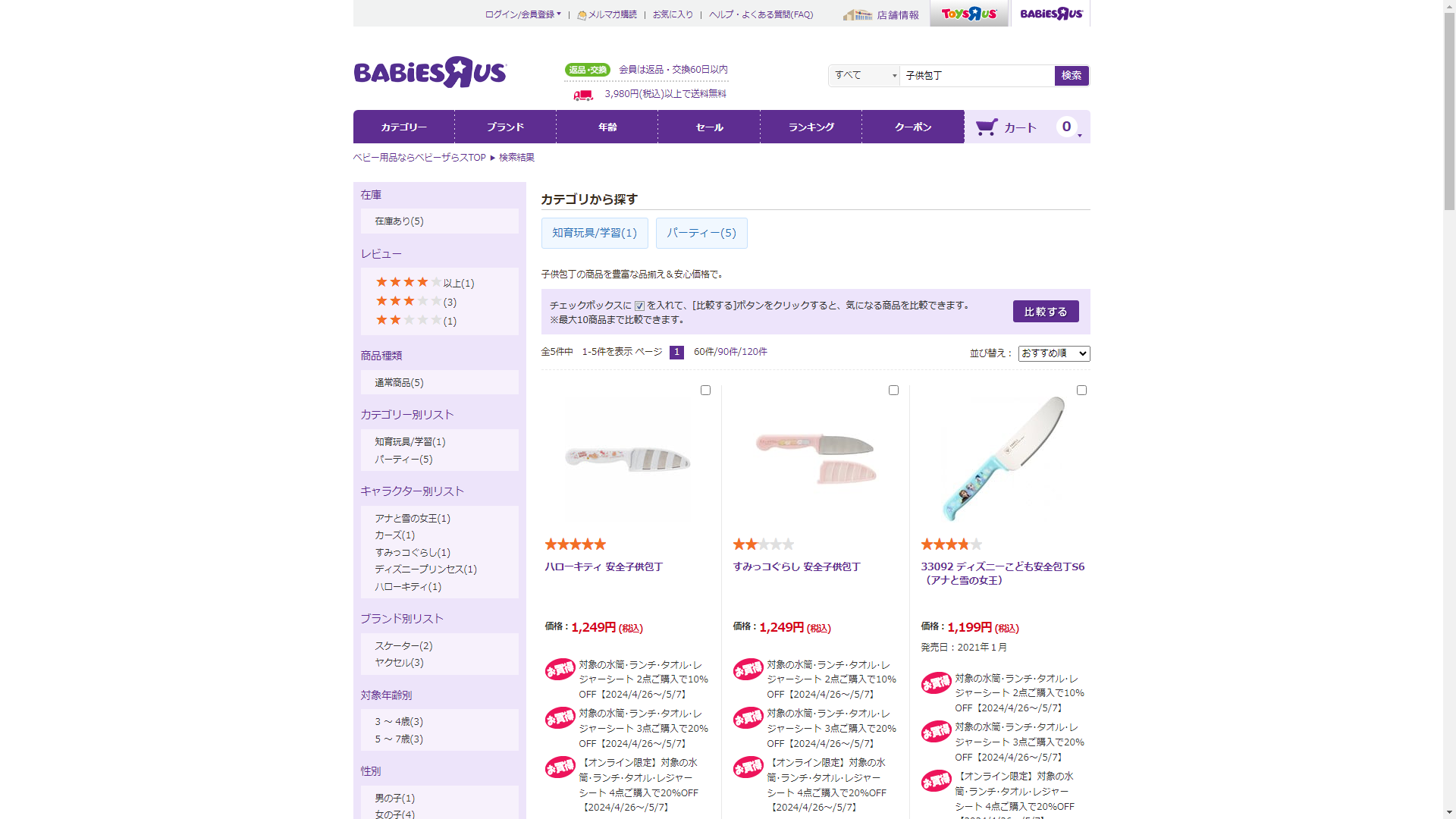 お調べしたところ現在、ベビーザらスでは子供包丁に関連する商品を買うことが可能です。