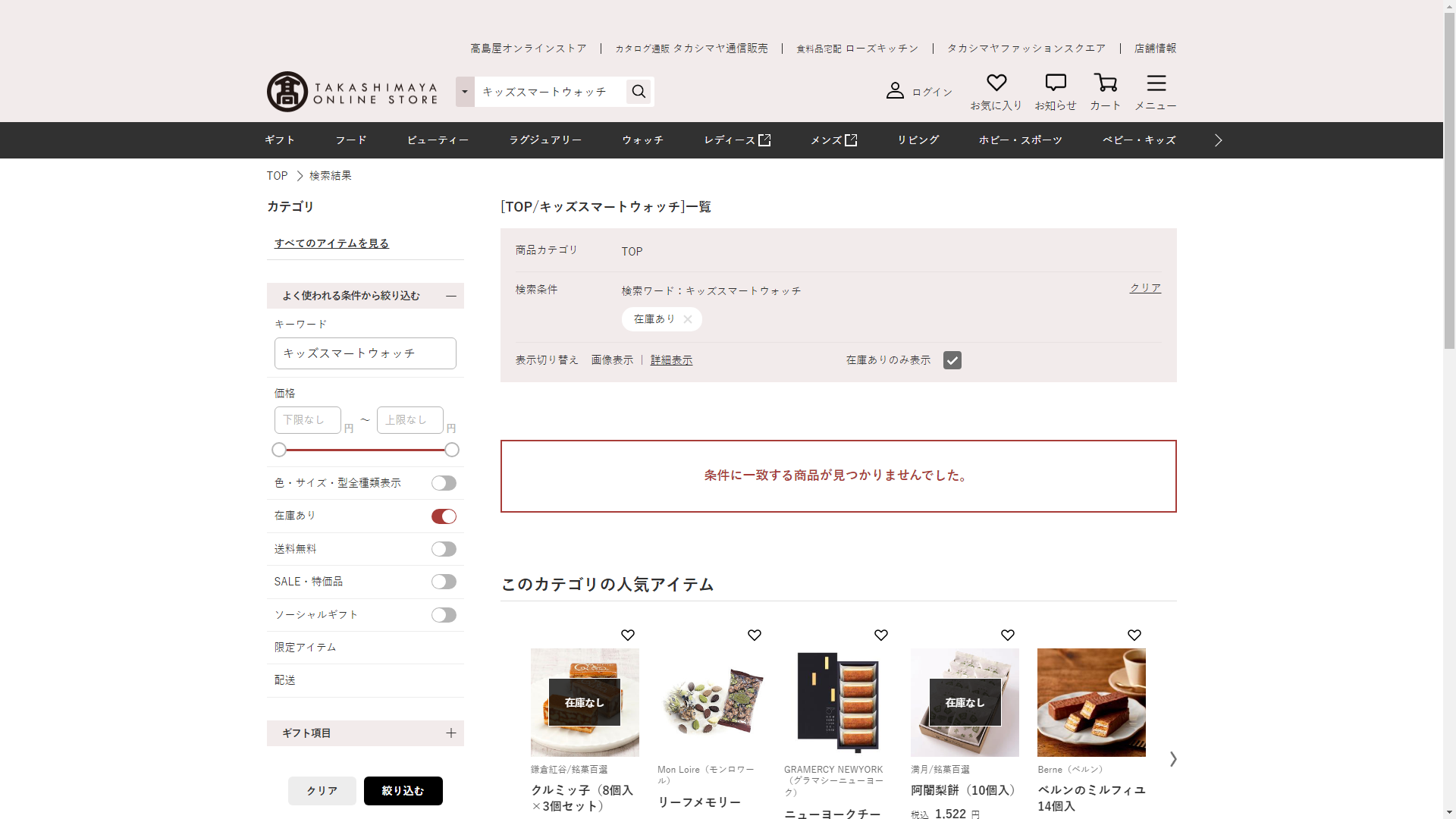 キッズスマートウォッチは高島屋には売っていません