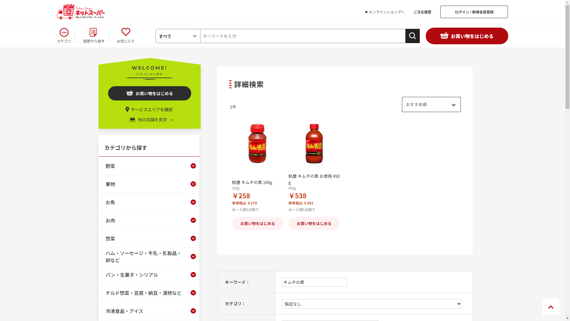 お調べしたところ現在、東急ストアではキムチの素の関連する商品が販売されています。