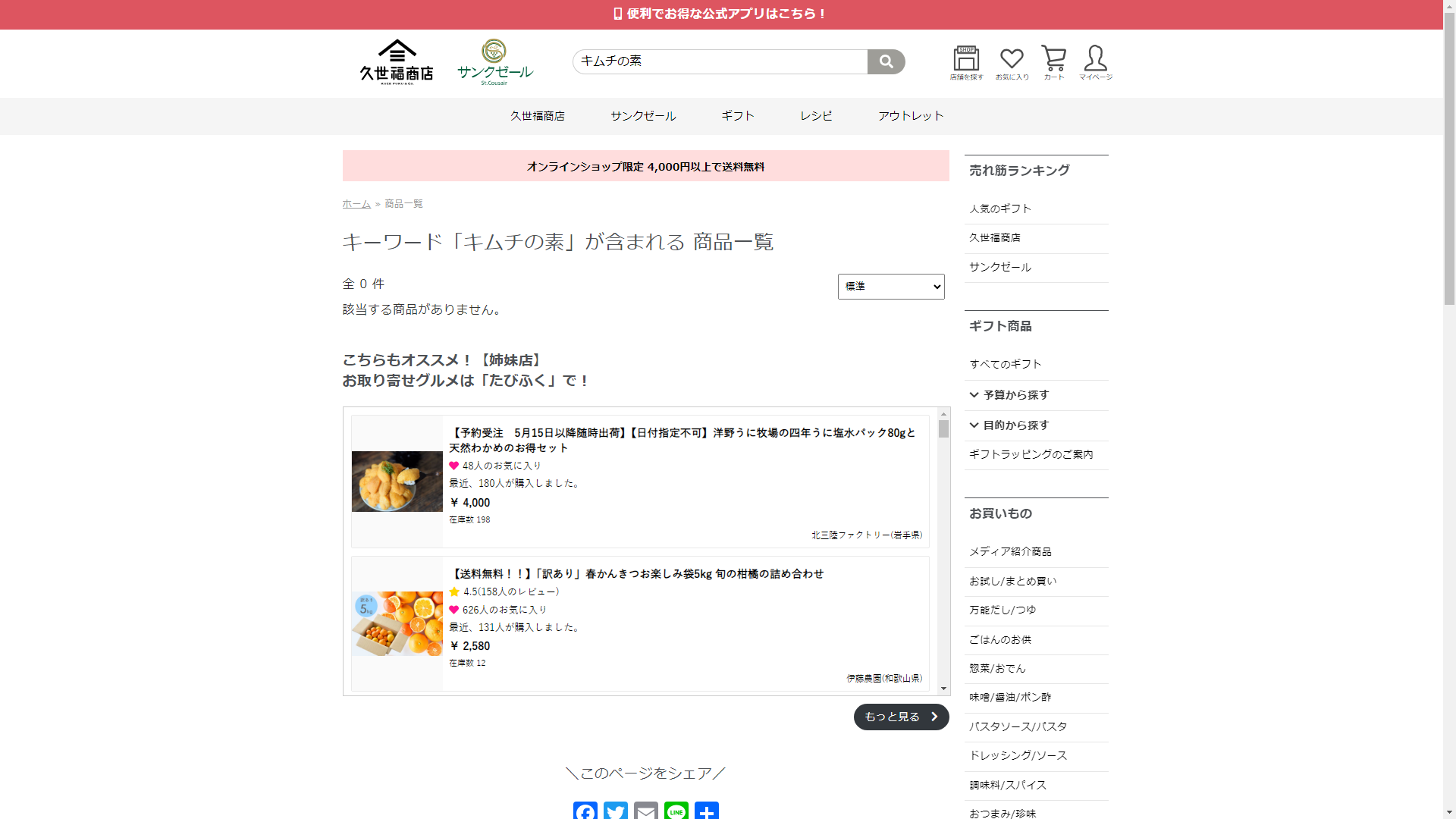 キムチの素は久世福商店で販売されていません