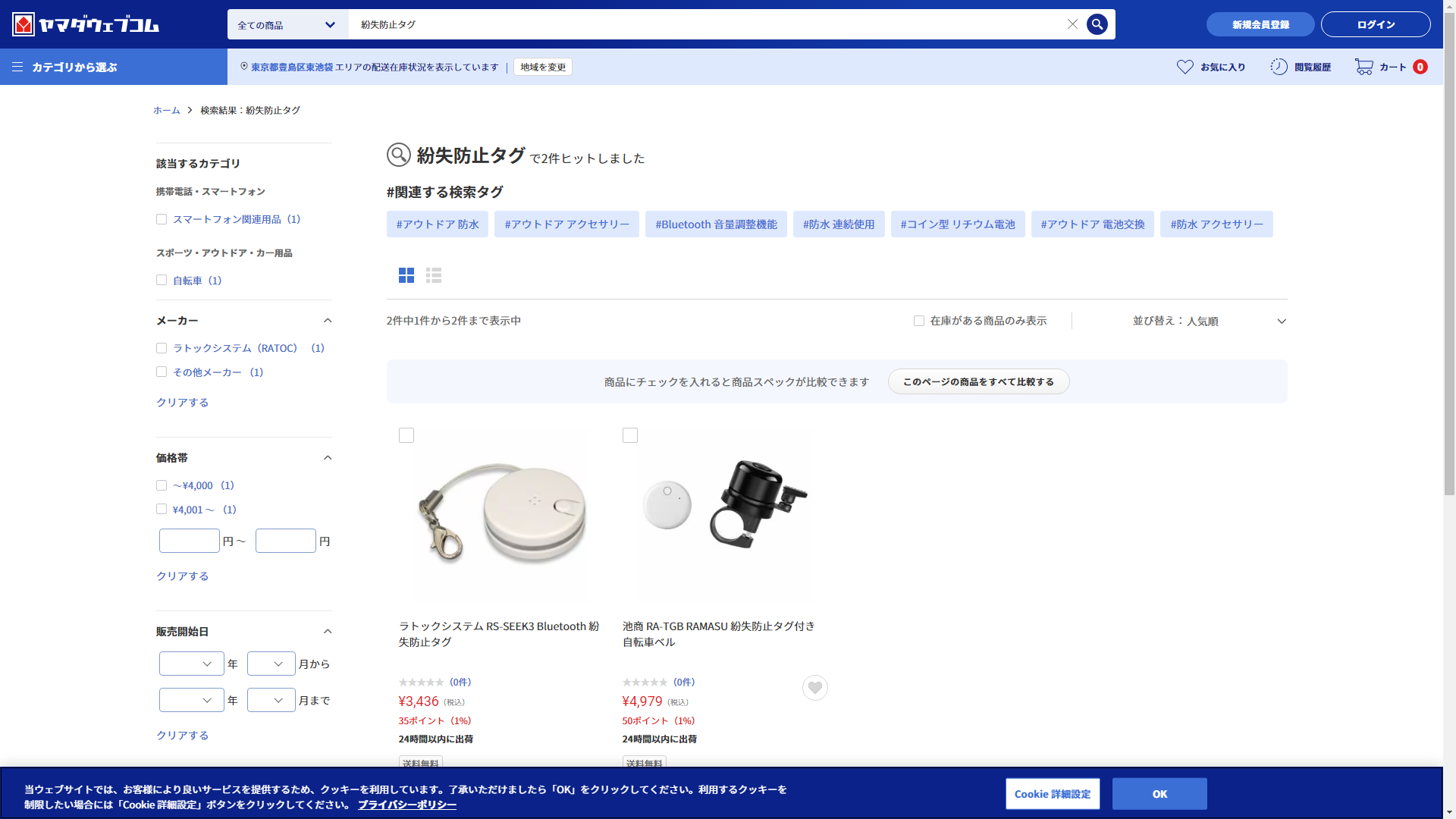 紛失防止タグはヤマダデンキで買える