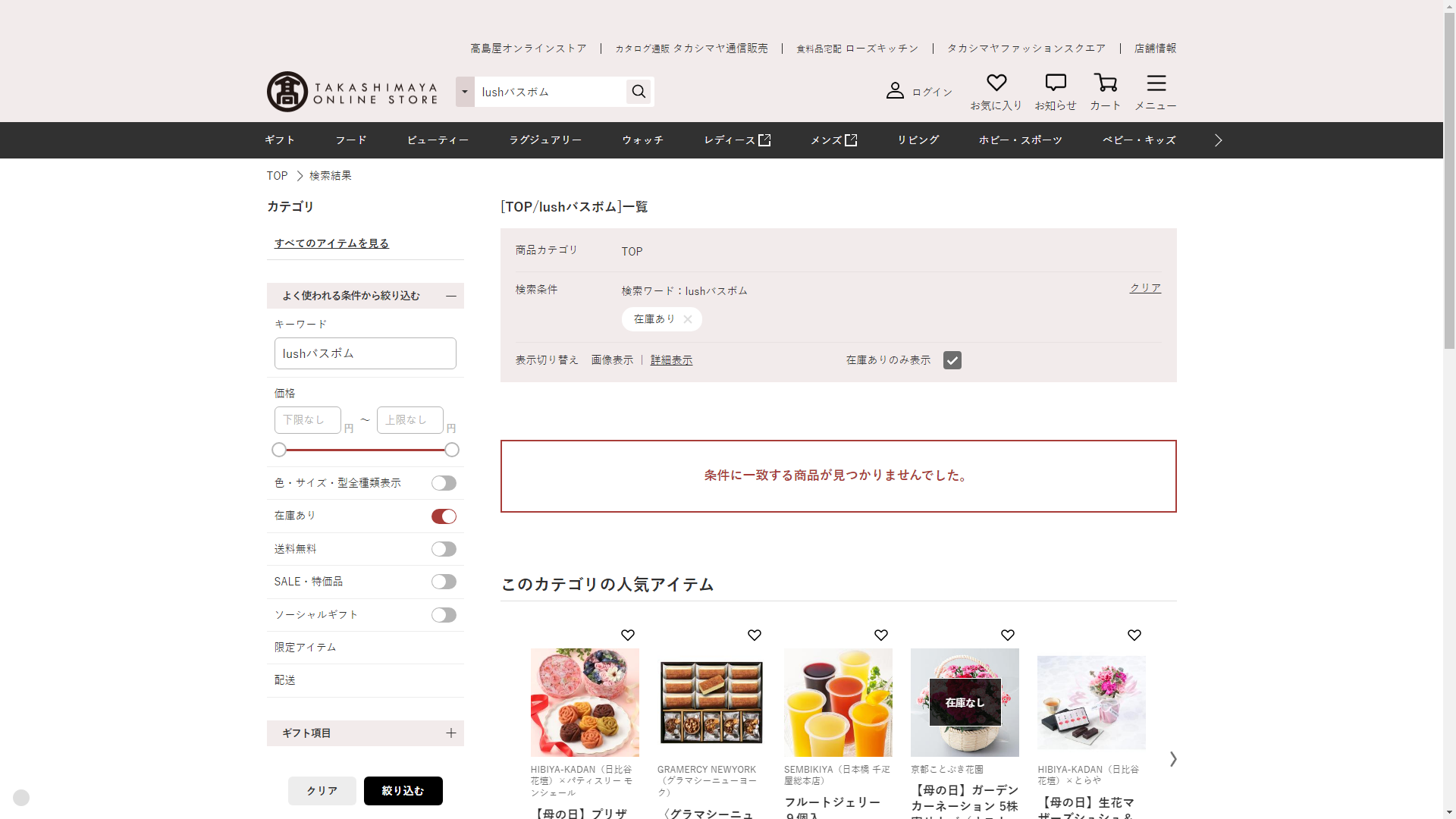lushバスボムは高島屋には売っていません