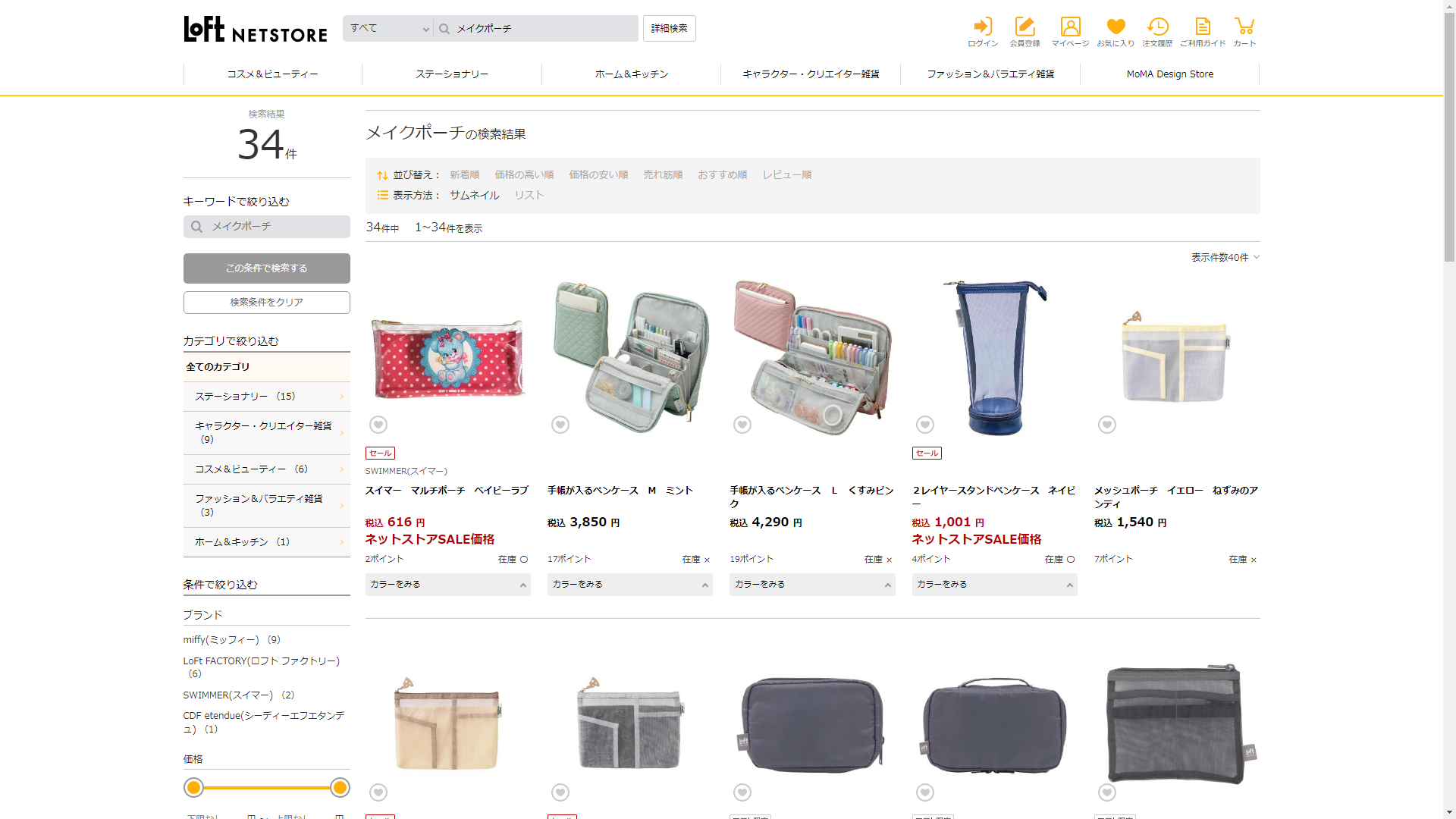 お調べしたところ現在、ロフトではメイクポーチに関連する商品が販売されています。