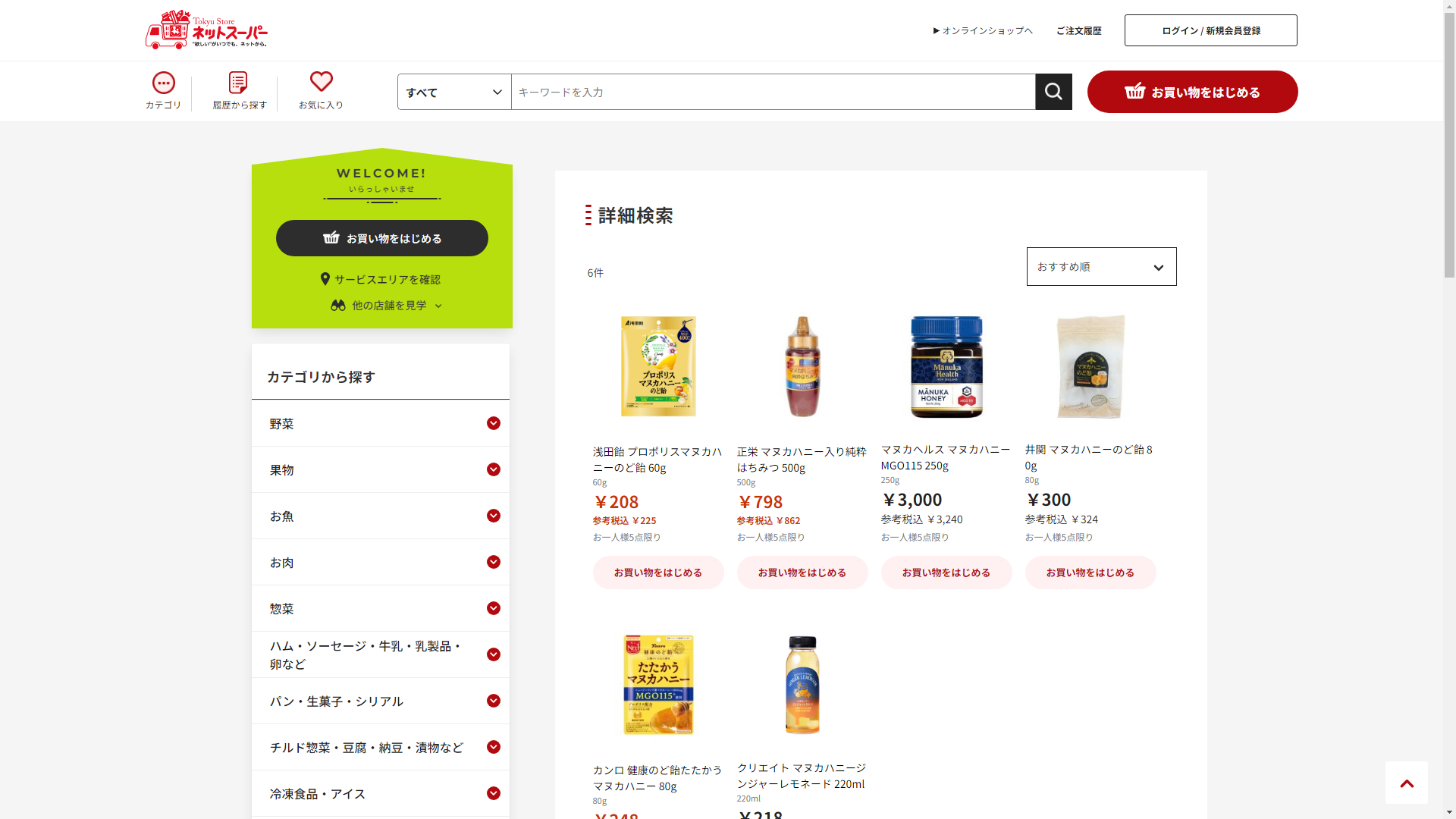 マヌカハニーはオーケーネットスーパーで販売されていません