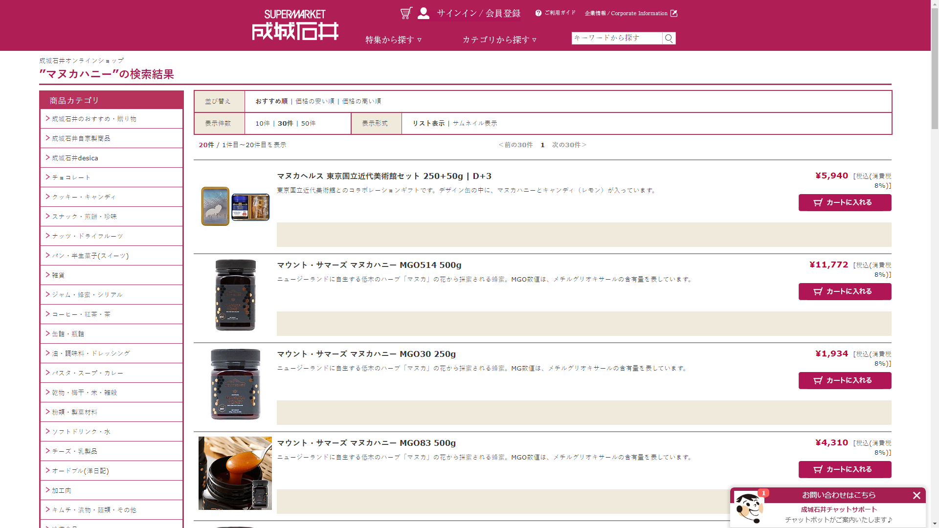 お調べしたところ現在、成城石井公式オンラインショップではマヌカハニーに関連する商品を買うことが可能です。